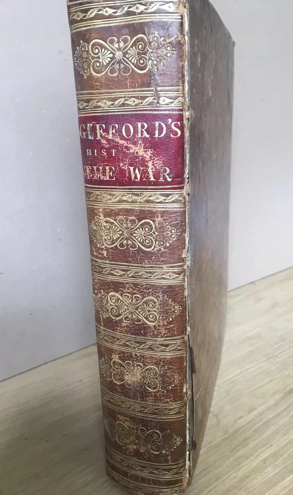 Antique Gilt Leather Gifford’s Hist Of The War With Map Hardcover Books 1840 #6