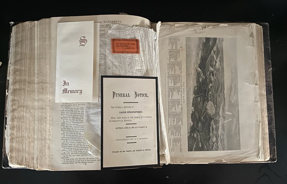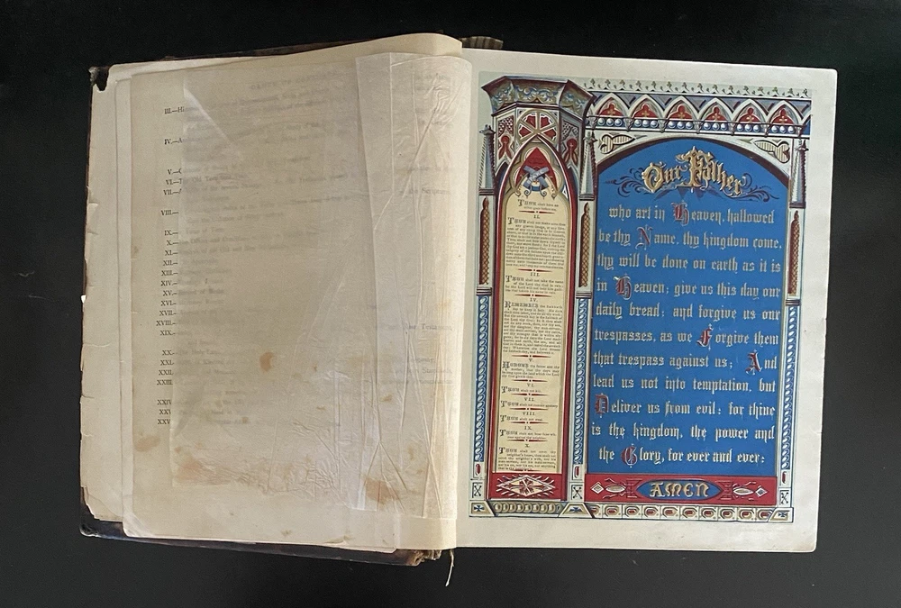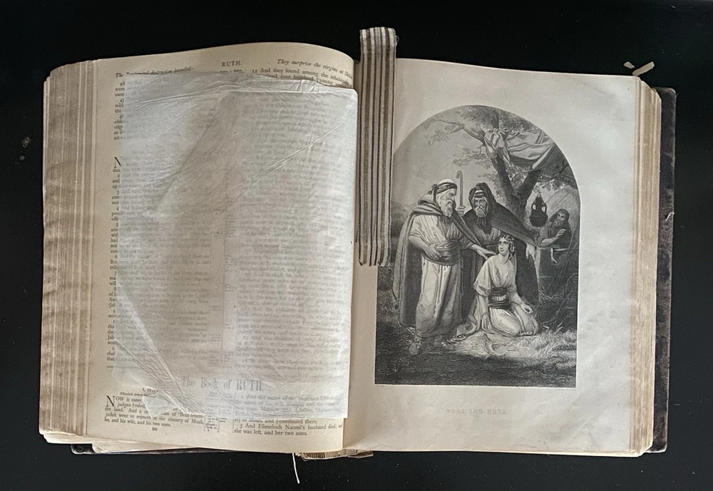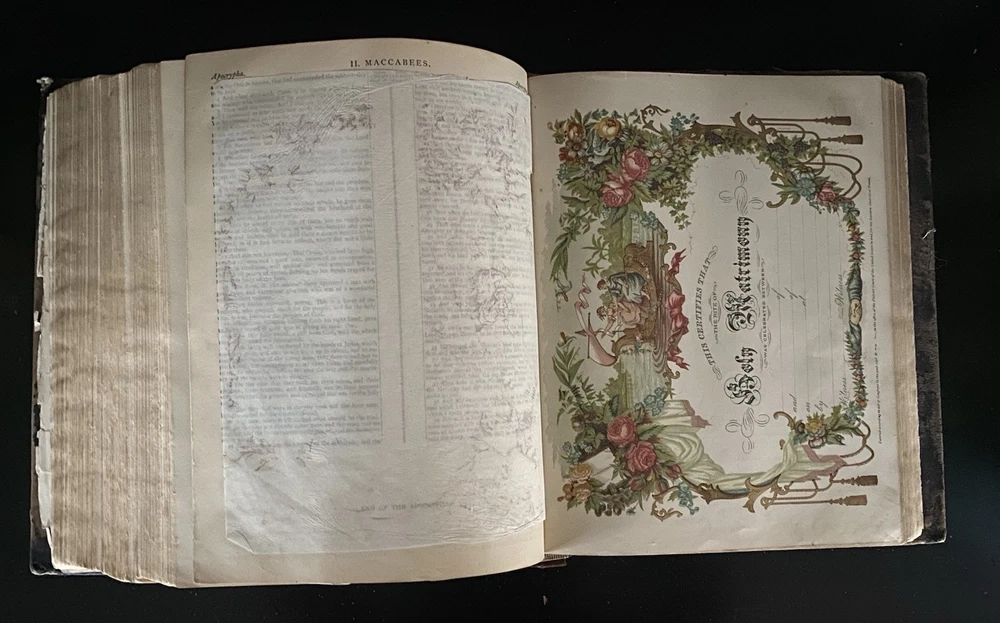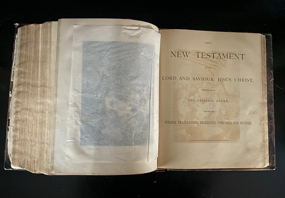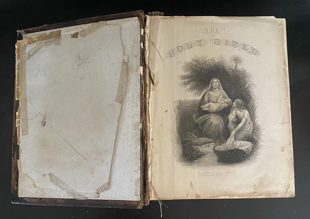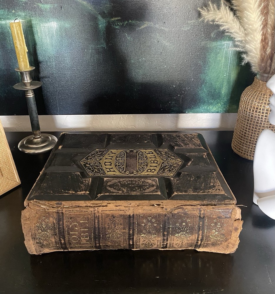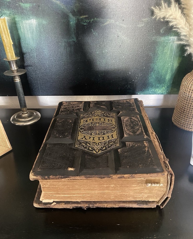 Leatherbound Antique Personalized Family Holy Bible by Bradley, Garretson & Co. 1879. Bible includes illustrated maps, full page steel engravings. Over 900 pages. This is the Peoples Standard Edition of New and Old Testaments and entered according to Act of Congress in 1876. This unique antique is extremely rare and includes personalized family history/inserts, memorials, mementos, keepsakes, and even a 4 leaf clover 🍀 from the 19 century! Bible is very old and shows its age. The hard cover binding is not completely attached throughout. The top and bottom of cover are not attached which may be repairable. Please review photos. Bible measures: 12.25” x 10” x 4” Bible weighs: about 11 pounds Feedback: Our goal is 100% customer satisfaction. If you are satisfied with your purchase, please be sure to leave POSITIVE feedback! Please inform us of any problems or issues that may arise. We request that you give us the opportunity to resolve the issue prior to leaving negative feedback.