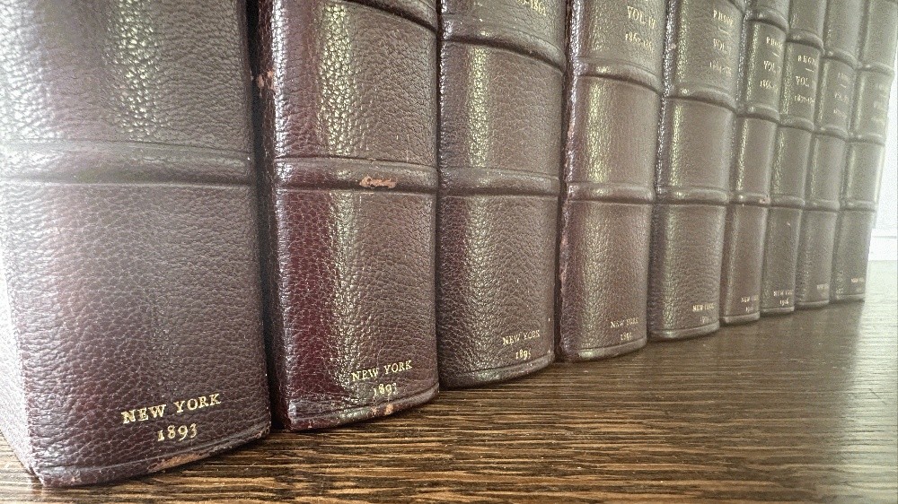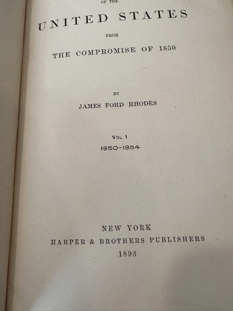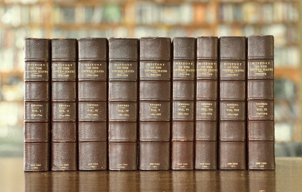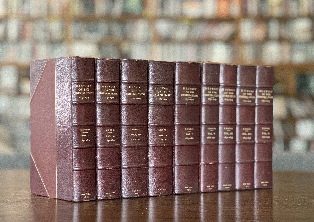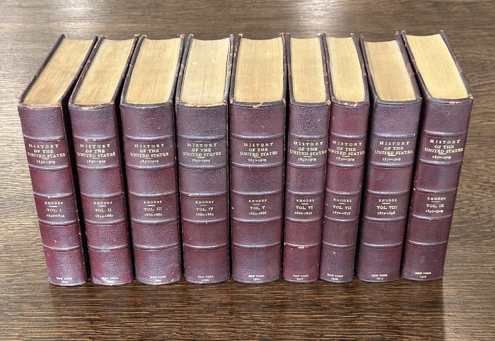 Antique LEATHER 9 vol The History of the United States w/maps James Ford Rhodes Author: James Ford Rhodes Publisher: Harper & Brothers; Macmillan Co Publication Date: 1893; 1922 Qty Available: 1 Condition: Collectible: Very Good Sku: 054630 Notes: Rebound in handsome 3/4 leather and bright gilt print. Each has a nameplate of previous owner. Your purchase benefits literacy and summer reading programs in Cincinnati and Hamilton County, Ohio. We ship every business day. All books ship in cardboard bookfolds with delivery confirmation. Sets or unusually heavy items ship in a box. Please contact us for more information.
