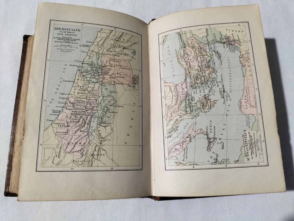 Antique Leather Bound Bible with Maps + 2 other Antique Religious Books 1st Editions The Holy Bible with Coloured Maps of Holy Lands British and Foreign Bible Society Eyre & Spottiswoode Printers to the King most Excellent Majesty The Light Invisible by Robert Hugh Benson Burns, Oates & Washbourne, Ltd. Publishers to the Holy See 1927 In Kedar's Tents by Henry Seton Merriman Everleigh Nash & Grayson Ltd. 1921 Special Edition with Muirden College Gold Embossed to cover Please see listing photos for full description, makers marks and condition. Please use zoom function. Antique and Vintage items will have normal bruising and wear commensurate with age and use unless otherwise stated. As Found - some age related issues per photos Photographs form part of the item description. We will not accept liability where the item's condition (including any flaws or damage) is clearly visible in the photographs provided, prior to a bid being placed. Items are sold "as is". I do not modify photos, however, colours may vary slightly due to artificial lighting & shadowing. Electrical items do NOT come with Test & Tag certification Make an Offer - in the case of auction items please make best offers above auction start price. Please view my other listings. Thank you. All the Best. Note: I will happily ship internationally but buyer will be responsible for any additional fees and/or taxes etc. Note: I use recycled packaging when possible, to save you and me a little money and help the environment. Note: Any large paintings that have glass in the frames – the glass will be removed if shipping as I have found it is impossible to ensure plate glass arrives safely with postal services.