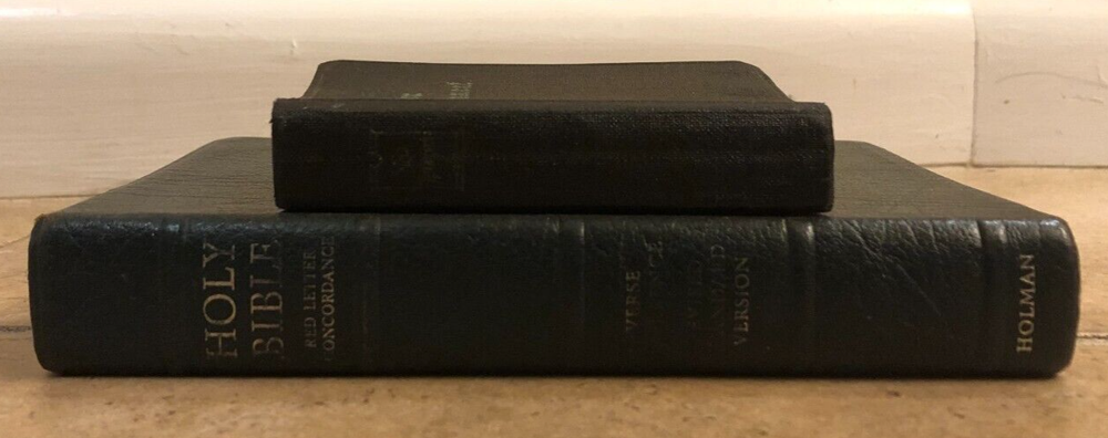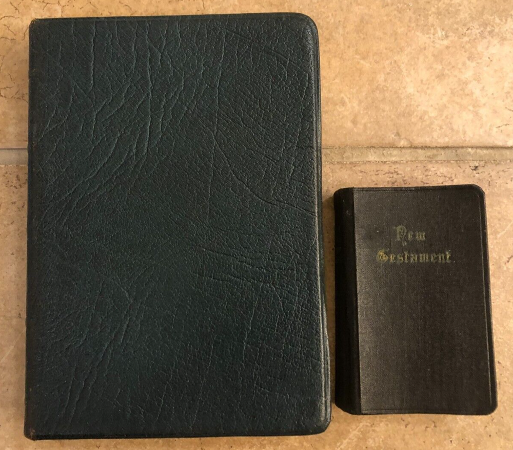 Antique Lot of 2 Bibles ~ VINTAGE - Holman RSV Holy Bible - 1952 Verse Reference Edition - Concordance - Red Letter with Gold Gilded Sides and Maps. - Holman Pocket New Testament - Undated (pre 1943) date on day awarded See Pictures for all Titles. Shipped with USPS Media Mail.