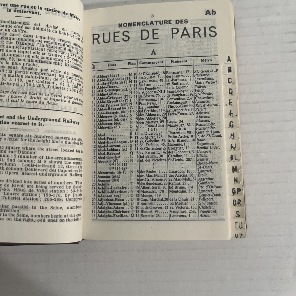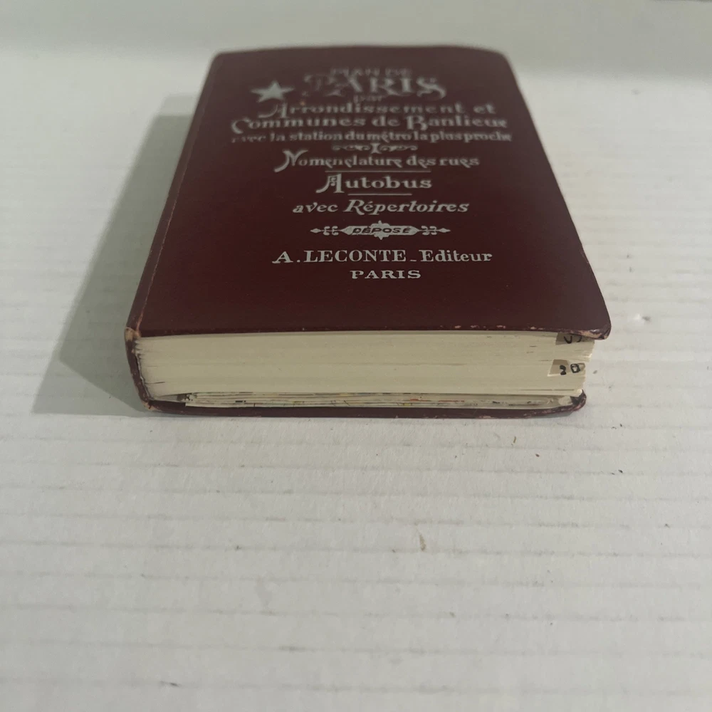 Good conditions See pictures for details Item 0046 Bin B The product is a collection of antique maps of Paris, organized by district, with directions provided in both English and French. Bound in leather, these original maps cater to travelers interested in exploration and travel within Paris. The dual language approach offers a unique perspective for those looking to navigate the city in a more authentic and historically-inspired manner.