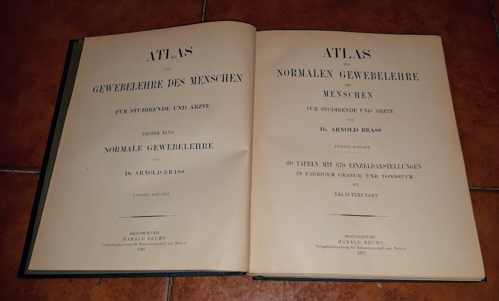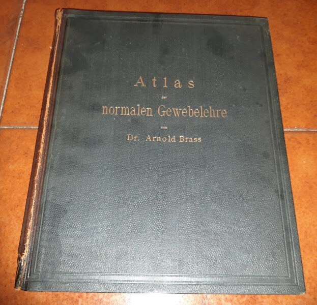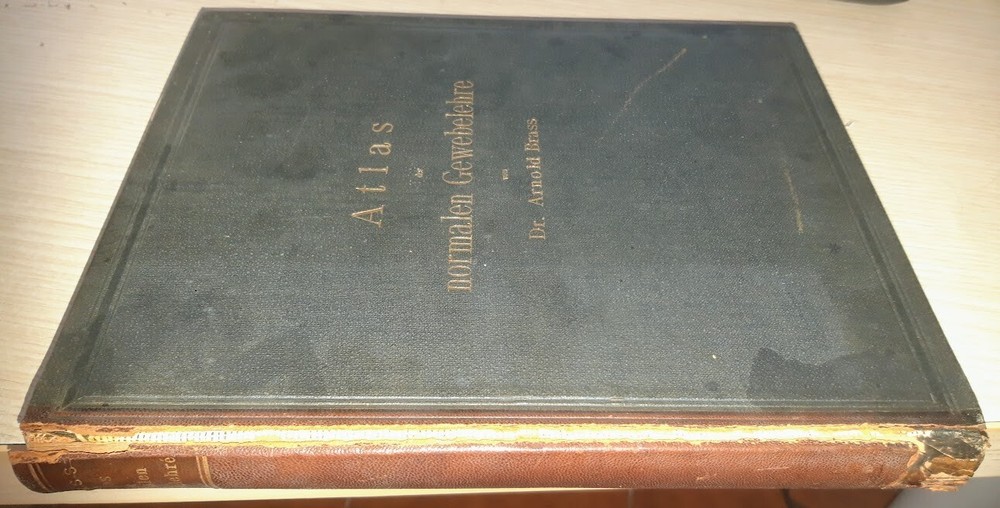 Author: Arnold Brass Title: Atlas der Norman Gewebelehre des Menschen Furd Studitndende and Artze Publisher: Harald Bruhn Braunschweig Edition: 2nd. Edition 1897 Pages: nn with 60 plates with 670 coloured engravings Distinctive Traits: Hard Cover With Some Usage Signs; Spine with Two Rips on the Lower and on the Upper Part and Partly Detaled From The Front Cover (Photo n. 3); a pen number on the first page; The Plate F3 and the Description of the Plate F4 Are Present, but detached from the Binding; Text in Very Good Conditions, Without Wrimentings or Underlinings. The Text is Fully Written in German Language. Author: Arnold Brass Title: Atlas der Norman Gewebelehre des Menschen Furd Studitndende and Artze Publisher: Harald Bruhn Braunschweig Edition: 2nd. Edition 1897 Pages: nn with 60 plates with 670 coloured engravings Distinctive Traits: Hard Cover With Some Usage Signs; Spine with Two Rips on the Lower and on the Upper Part and Partly Detaled From The Front Cover (Photo n. 3); a pen number on the first page; The Plate F3 and the Description of the Plate F4 Are Present, but detached from the Binding; Text in Very Good Conditions, Without Wrimentings or Underlinings. The Text is Fully Written in German Language.