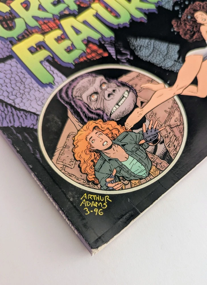 Art Adams' Creature Features from Dark Horse Comics, 1996, is a must-have for fans of horror and science fiction. This first edition features amazing cover art from Arthur Adams and Laura Allred. The book showcases the adventures of Art Adams, Godzilla, Monkeyman, Axwell Tiberius, Ann O'brien, and Gill-Man in a gripping storyline by acclaimed artists and writers such as Gracine Tanaka, Alan Moore, Geof Darrow, Laura Allred, Steve Moncuse, Rachelle Menashe, Randy Stradley, Terry Austin, and Matt Hollingsworth. The book is in English and belongs to the Modern Age (1992-Now) era of US Comics. This book shows minor signs of wear. Please see photos for more detail.