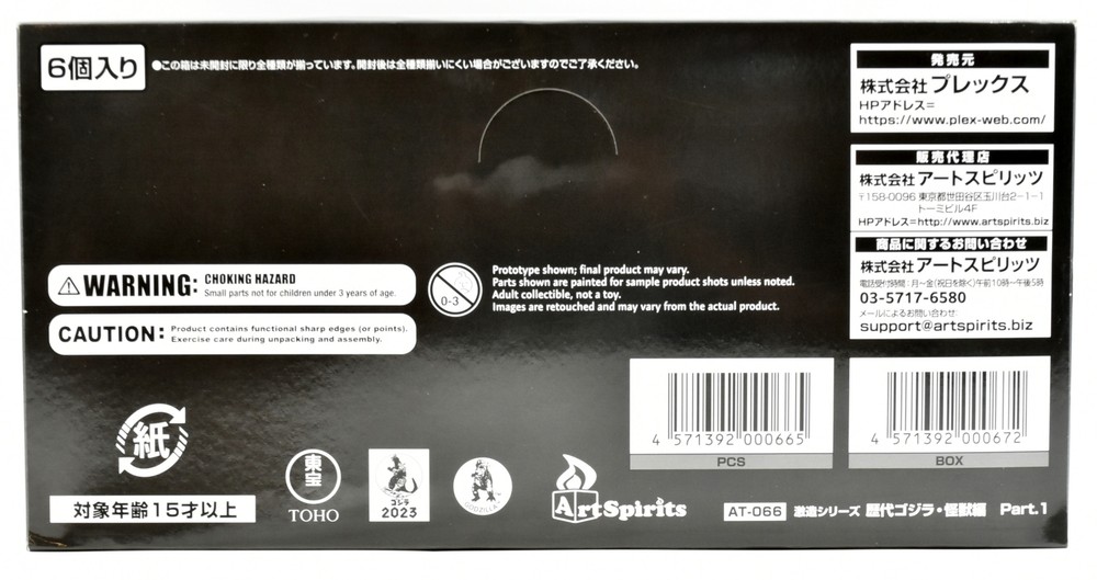 Title Art Spirits Gekizo series Godzilla Kaiju Part.1 1BOX Brand Art Spirits Series Gekizo series: Godzilla and other Kaijus Part 1 Item Name Godzilla Item Condition Unopened, package heavily damaged SKU nitem-00L1P5TI UPC 4571392000672 Size Approx 12.60 x 11.42 x 6.50in (320 x 290 x 165mm) Weight Approx 41.27oz (2.579lb 1170g) Import duties, taxes, and charges are not included in the item price or shipping charges. These are the responsibility of the buyer and are usually charged when the item is delivered if applicable. Please check with the customs office in your country for information about possible costs and charges. If you are eligible for free shipping, please note that taxes are not included (please do not confuse this with the domestic sales tax that eBay may charge). Please be sure to read all contents before purchasing. By placing an order with us you agree that you have read, understood, and agree everything below. While we aim to respond to inquiries within 1 to 3 working days, please be aware that there are times it may take longer. As our automated shipping process starts immediately once an order is paid for, this means that cancellation and other such requests may not be possible. Please do not place an order unless you are happy with the item. Everything that is included with this item is shown as shown in the pictures and described (as we may have more than one of this item in stock, the item shown in the pictures may not be the exact item shipped). If this item originally came with anything that is not shown in the pictures (cases, bonuses etc), then they are not included with in this listing . Please keep in mind that altho very rare, due to a data transfer delay between eBay and our warehouse, some items should have been removed from Mandarake's eBay listing. There will be times when we have to cancel an order due to this data transfer delay. Mandarake is now on eBay! Now you can find our wonderful selection of books, toys and figures from anime, manga, games, cards, cosplay goods, j-pop goods and other Japanese popular culture and more right here! We also have our fantastic dolls and old-school toys too. All of our items are shipped straight from our warehouse in Katori, Japan to your door! Check out our other eBay listings here! General Conditions Since all of our items are second hand, they may have slight signs of damage, such as minor scratches. If the item has noteworthy damage it will be mentioned above. Please note that items with clear cases are likely to have discoloration that is not clear in the pictures. Everything that is included with this item is shown as shown in the pictures and described (as we may have more than one of this item in stock, the item shown in the pictures may not be the exact item shipped). If the item originally came with anything that is not shown in the pictures (cases, bonuses etc), then they are not included with in this listing . Please note that some product boxes may show other items from the same series, but they are not included unless otherwise noted. Condition Rating Details: 10-point Scale (10) Mint / Like New (9) Excellent to Near Mint / Very good condition for a used item (8) Great / Relatively good condition for a used item (7) Good / Average condition for a used item, with some minor damage (6-5) Average / Decent. Contains damage from external factors like fading, yellowing, stains, wear. (4-3) Fair/ Acceptable. Noticeable damage, including, tears, missing or damaged parts, discoloration, and wear. Suitable for enjoying as an item but not for collection. Some integral extras may be missing. (2-1) Mediocre / Poor. Not for collectors, As is. The severity of damage decreases as the score decreases, which is reflected in the price. Evaluation criteria may vary depending on the publication date, book binding, and characteristics. Actual product condition may differ slightly from the images. Regarding first editions, reprints, and the presence of dust jackets, this information is stated in the title or product description. If not specified, these details cannot be selected. Please refer to the product details section for information on included accessories. Please Keep the following in mind Items are not hand-signed unless specifically mentioned. Items that are 'Motor Powered' may not include a motor. Items that are noted as unopened/resealed have not had their condition checked beyond what we can see from outside as we cannot open the package. The size displayed on the listing includes the package of the item and is not the dimension for the item itself. If the item is inside a plastic bag, the dimensions displayed on the listing are the dimensions of the bag flattened out. Unopened items are sold as is, and cannot be returned as faulty if you open the package (you will need to contact the manufacturer for assistance). We cannot be held responsible if an unopened item is opened by your local customs office. Unopened items, especially old electronics, may no longer be working and are sold as not working. Some items, such as books, may be shown in the pictures as wrapped. This is to protect them while they are in the warehouse, they are not brand new unless specifically mentioned. Please assume all items are in Japanese if not specifically stated as so. This includes Books, DVDs, and any other item that may be Language dependent. Conditions (More Information) Sometimes items have single word descriptions for their conditions. Please use the following guide for more information on item conditions. Unopened / Not Opened - The item is still sealed, the contents are unused. Please note that we have not checked the condition beyond what we can see from outside as we cannot open the package. Unopened items are sold as is, and cannot be returned if they are faulty if you open the package. We cannot be held responsible if an unopened item is opened by your local customs office. Box Resealed - The item has been opened by the manuf