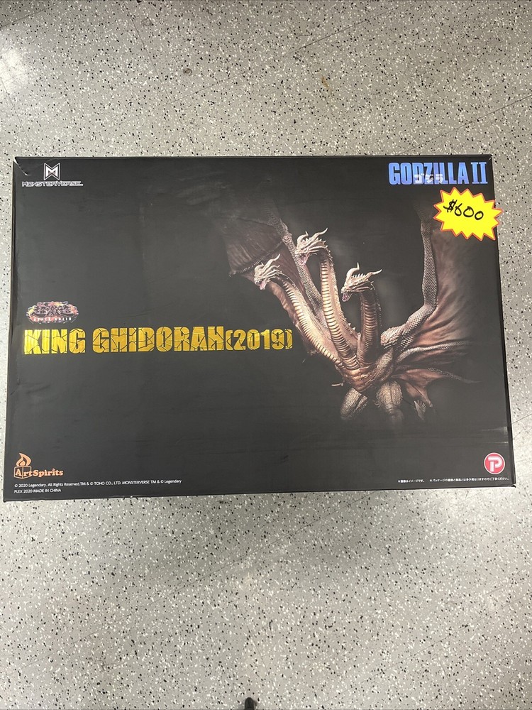 This is a brand new sealed product. ART SPIRITS 2020 KING GHIDORAH (2019) statue. The box shows some wear but is intact. The bottom of the box has a few dents from being moved around. Please review the photos for your own judgement. Ninja Exchange