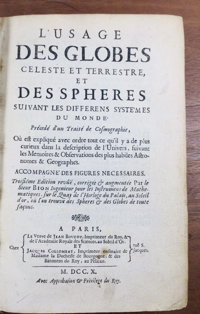 Rare work published in 1710 in Paris at the widow Boudot, the use of the celestial and terrestrial globes preceded by a cosmography treaty where all that has been curious in the description of the universe by Nicolas Bion and Cosmographer French manufacturer of mathematics instruments is explained. Many engravings 42 plates out of texts. A volume in 8 full basane brunette rugged binding see photos. 378 pages interior good condition (see photos) for a document that is over 310 years old. • We only sell authentic documents We accept payment by check. We have many historical documents and engravings to discover in our Ebay store. Do not hesitate to subscribe to our profile in order to receive new ads in priority. Protected shipment. Rare work published in 1710 in Paris at the widow Boudot, the use of the celestial and terrestrial globes preceded by a cosmography treaty where all that has been curious in the description of the universe by Nicolas Bion and Cosmographer French manufacturer of mathematics instruments is explained. Many engravings 42 plates out of texts. A volume in 8 full basane brunette rugged binding see photos. 378 pages interior good condition (see photos) for a document that is over 310 years old. • We only sell authentic documents We accept payment by check. We have many historical documents and engravings to discover in our Ebay store. Do not hesitate to subscribe to our profile in order to receive new ads in priority. Protected shipment.