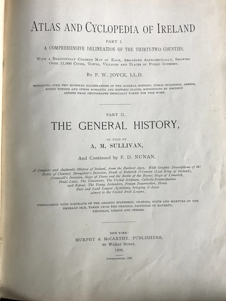 Atlas & Cyclopedia of Ireland P W Joyce HC 1900 Edition Good Condition. 5 or 6 pages ripped at the beginning of the book but after that is great book and pictures, great collectible book.Shipped with USPS Media Mail.