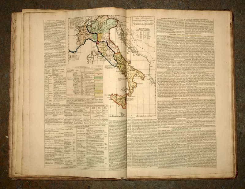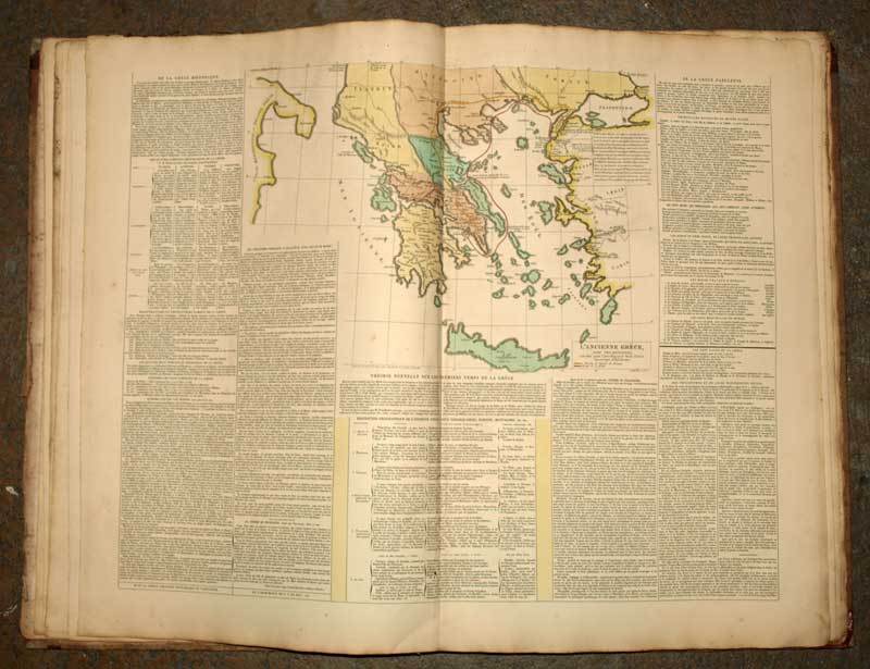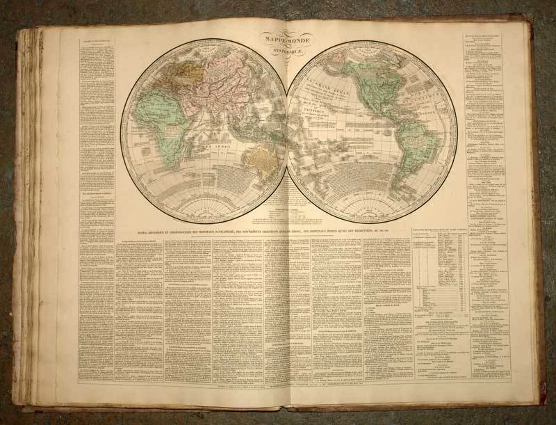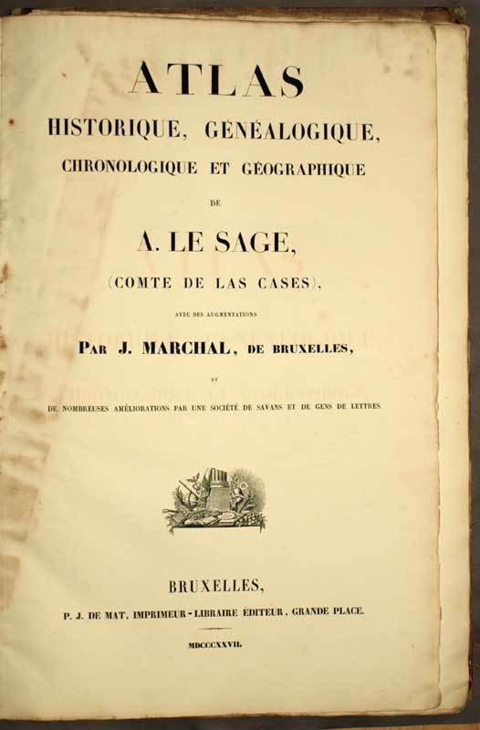 ATLAS HISTORICAL, GENEALOGICAL, CHRONOLOGICAL AND GEOGRAPHICAL of A. THE WISE (Count of LA CASES) with increases By J. MARCHAL, from Brussels And numerous improvements by a society of scholars and people of letters In Brussels PJ de Mat, Printer, bookseller and publisher, Grande Place 1827 Set of 36 plates in out-of-text prints (complete) Format In folio (60 x 41 cm) Binding worn and rubbed and spine is missing Multiple foxing on the first 5 sheets then very little Tear with lack of paper on the plate "The splendors of Napoleon" without affecting the text COMPLETE ATLAS OF ALL ITS PAGES AND MAPS 19 ATLAS HISTORICAL, GENEALOGICAL, CHRONOLOGICAL AND GEOGRAPHICAL of A. THE WISE (Count of LA CASES) with increases By J. MARCHAL, from Brussels And numerous improvements by a society of scholars and people of letters In Brussels PJ de Mat, Printer, bookseller and publisher, Grande Place 1827 Set of 36 plates in out-of-text prints (complete) Format In folio (60 x 41 cm) Binding worn and rubbed and spine is missing Multiple foxing on the first 5 sheets then very little Tear with lack of paper on the plate "The splendors of Napoleon" without affecting the text COMPLETE ATLAS OF ALL ITS PAGES AND MAPS 19