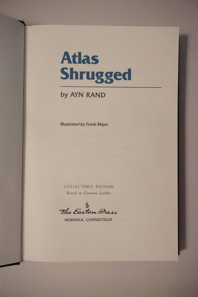 Wonderful copy of Atlas Shrugged - Volumes 1 and 2 by Ayn Rand. Published in 2000 by Easton Press of Norwalk, Connecticut. The leatherbound books are in very good condition, with minimal wear to the covers and edges. Great find at a great price! Please note the S&H charges, which include USPS postage, materials, and handling. Pictured bookends are not included in the sale. This item will be shipped insured and will require signature confirmation upon receipt. View our other eBay listings at Weiss Lane Books! https://www.ebay.com/str/Weiss-Lane-Books