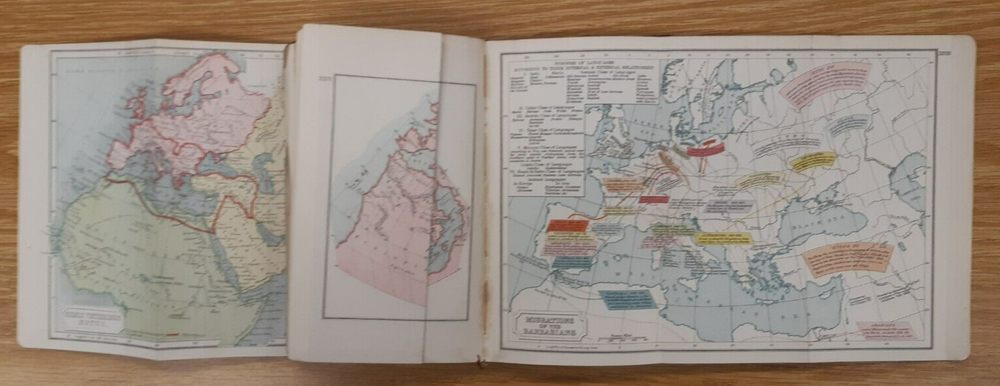 Atlas of Ancient and Classical Geography, Dent Everyman's Library. No date. Bound in red leather with gilt lettering and decoration. 29 fold-out coloured maps of the ancient world. Approx 14 x 23 cm.