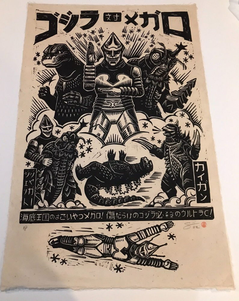 Attack Peter - "Godzilla vs Megalon" AP Poster AP Edition Signed and has embelishment stamp Stored flat roughly 20x30 will ship usps insured with signature confirmation...