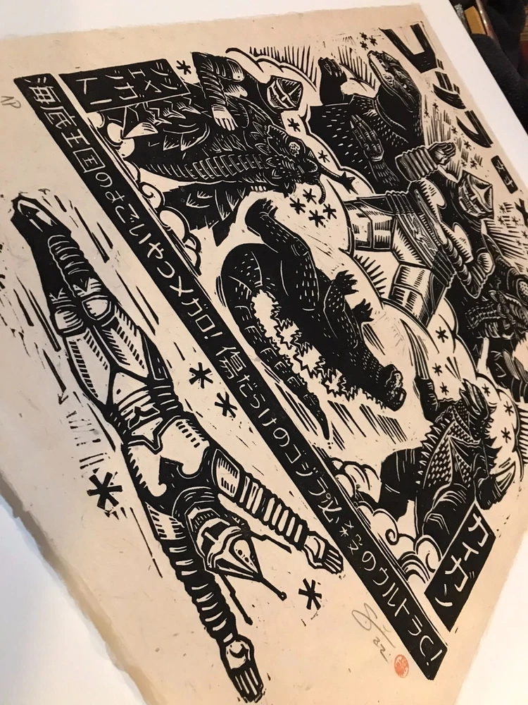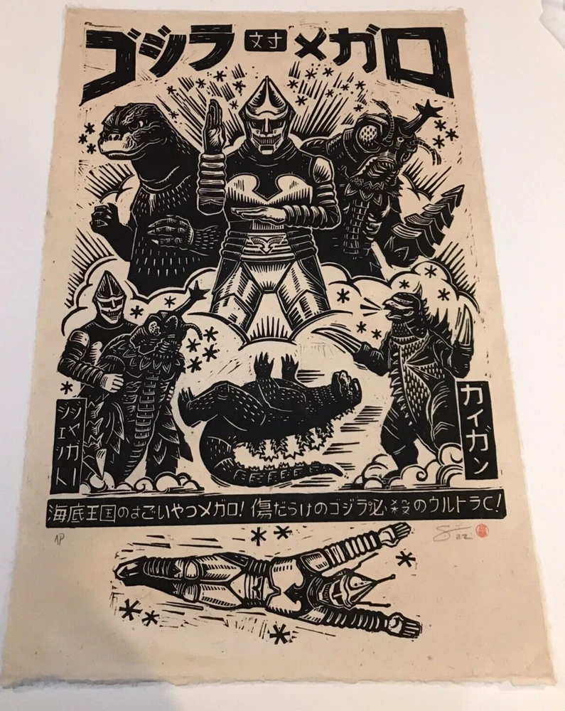 Attack Peter - "Godzilla vs Megalon" AP Poster AP Edition Signed and has embelishment stamp Stored flat roughly 20x30 will ship usps insured with signature confirmation