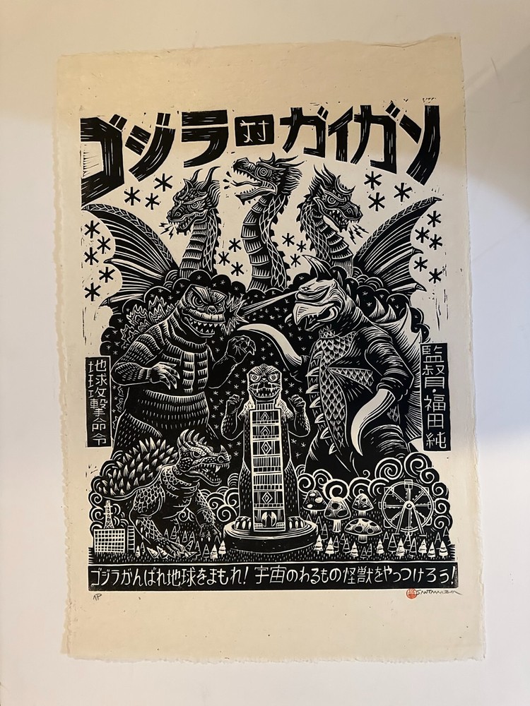 Attack Peter - "Godzilla vs Gigan" Poster AP Edition Signed by Attack Peter Stored flat roughly 20 x30