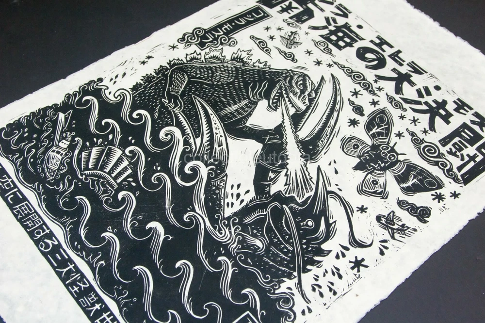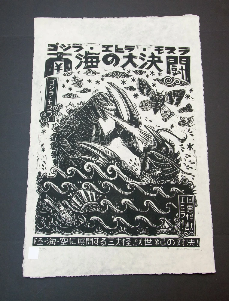 Attack Peter 2020 MONDO Godzilla Ebirah, Horror of the Deep Signed and Numbered Limited Linocut Edition #/120 Movie Art Print Poster THIS ITEM IS A LIMITED EDITION AND IT IS VERY RARE . BUYER MUST PAY WITHIN 48 HOURS FROM THE END OF PURCHASE. ITEM IS READY TO BE SHIPPED WITHIN 24-48 HRS AFTER PAYMENT. Product Description: This is a rare , limited Attack Peter 2020 MONDO Godzilla Ebirah, Horror of the Deep Signed and Numbered Limited Linocut Edition #/120 Movie Art Print Poster. This piece of artwork is signed and numbered by the artist, and measures 20" x 30" linocut print on Lokta paper. Print is in new condition and it has never been framed. This print is sold out, and is limited to only 120 pieces worldwide. This print looks amazing and it is really hard to find. If you are a huge Godzilla fan, get it before it is too late since it will never be printed again. Item will be shipped in sturdy tube with Kraft paper and/or or acid free sleeve/pouch. THIS ITEM COMES FROM A SMOKE-FREE ENVIRONMENT. *** SHIPPING INSURANCE WILL BE INCLUDED WITH NO EXTRA CHARGE *** PLEASE CONTACT ME FOR LOCAL PICKUP INFO (local pickup fee may be applied) ADDITIONAL SHIPPING CHARGE MAY BE APPLIED IF THE SHIPPING ADDRESS IS IN AK, HI, PR, GU or APO. SHIPPED TO CONFIRMED ADDRESS ONLY. FOR INTERNATIONAL BUYERS - PLEASE NOTE: IMPORT DUTIES, TAXES, AND CHARGES ARE NOT INCLUDED IN THE ITEM PRICE. THESE CHARGES ARE THE BUYER'S RESPONSIBILITY. PLEASE CHECK WITH YOUR COUNTRY'S CUSTOMS OFFICE TO DETERMINE WHAT THESE ADDITIONAL COSTS WILL BE PRIOR TO BIDDING OR BUYING.