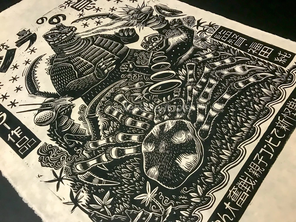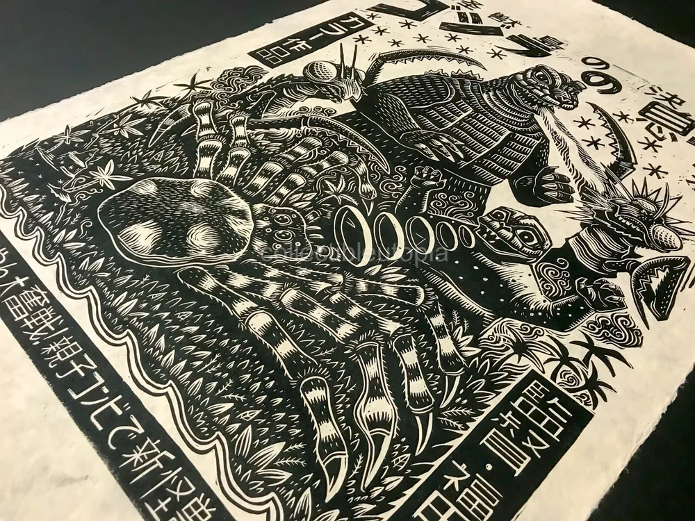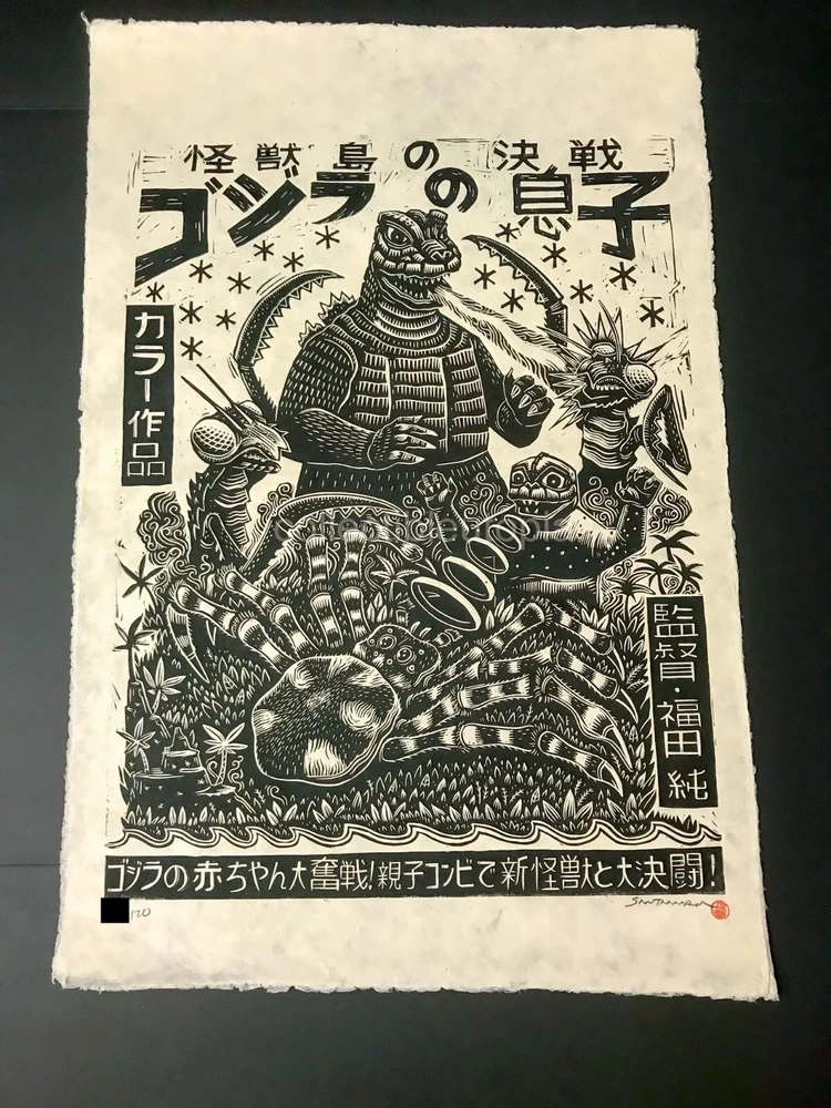 Attack Peter 2020 MONDO Son of Godzilla Limited Linocut Edition #/120 Movie Art Print Poster THIS ITEM IS A LIMITED EDITION AND IT IS VERY RARE . BUYER MUST PAY WITHIN 48 HOURS FROM THE END OF PURCHASE. ITEM IS READY TO BE SHIPPED WITHIN 24-48 HRS AFTER PAYMENT. Product Description: This is a rare , limited Attack Peter 2020 MONDO Son of Godzilla Limited Linocut Edition #/120 Movie Art Print Poster. This piece of artwork is numbered by the artist, and measures 20" x 30" linocut print on Lokta paper. Print is in new condition and it has never been framed. This print is sold out, and is limited to only 120 pieces worldwide. This print looks amazing and it is really hard to find. If you are a huge Godzilla fan, get it before it is too late since it will never be printed again. Item will be shipped in sturdy tube with Kraft paper and/or or acid free sleeve/pouch. THIS ITEM COMES FROM A SMOKE-FREE ENVIRONMENT. *** SHIPPING INSURANCE WILL BE INCLUDED WITH NO EXTRA CHARGE *** PLEASE CONTACT ME FOR LOCAL PICKUP INFO (local pickup fee may be applied) ADDITIONAL SHIPPING CHARGE MAY BE APPLIED IF THE SHIPPING ADDRESS IS IN AK, HI, PR, GU or APO. SHIPPED TO CONFIRMED ADDRESS ONLY. FOR INTERNATIONAL BUYERS - PLEASE NOTE: IMPORT DUTIES, TAXES, AND CHARGES ARE NOT INCLUDED IN THE ITEM PRICE. THESE CHARGES ARE THE BUYER'S RESPONSIBILITY. PLEASE CHECK WITH YOUR COUNTRY'S CUSTOMS OFFICE TO DETERMINE WHAT THESE ADDITIONAL COSTS WILL BE PRIOR TO BIDDING OR BUYING.