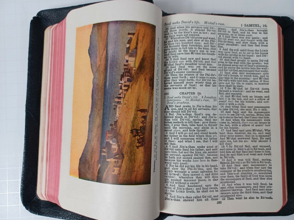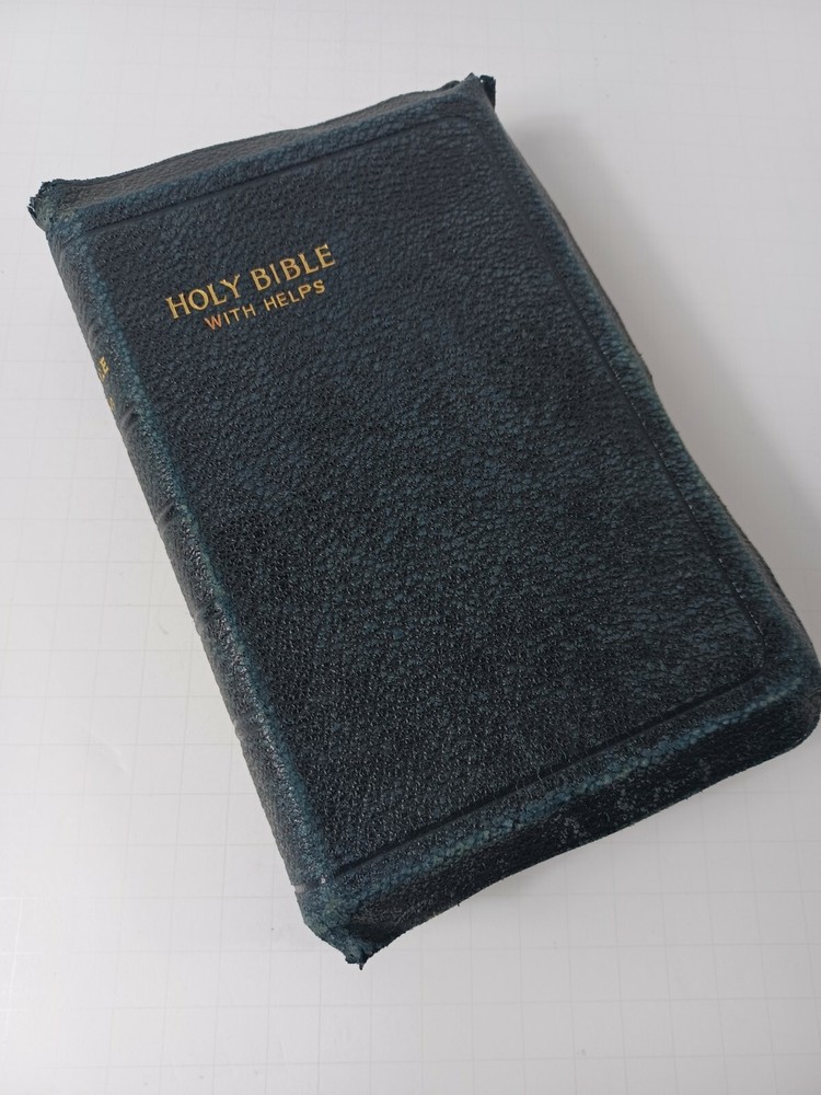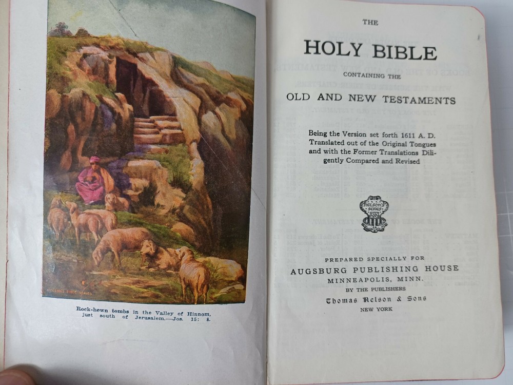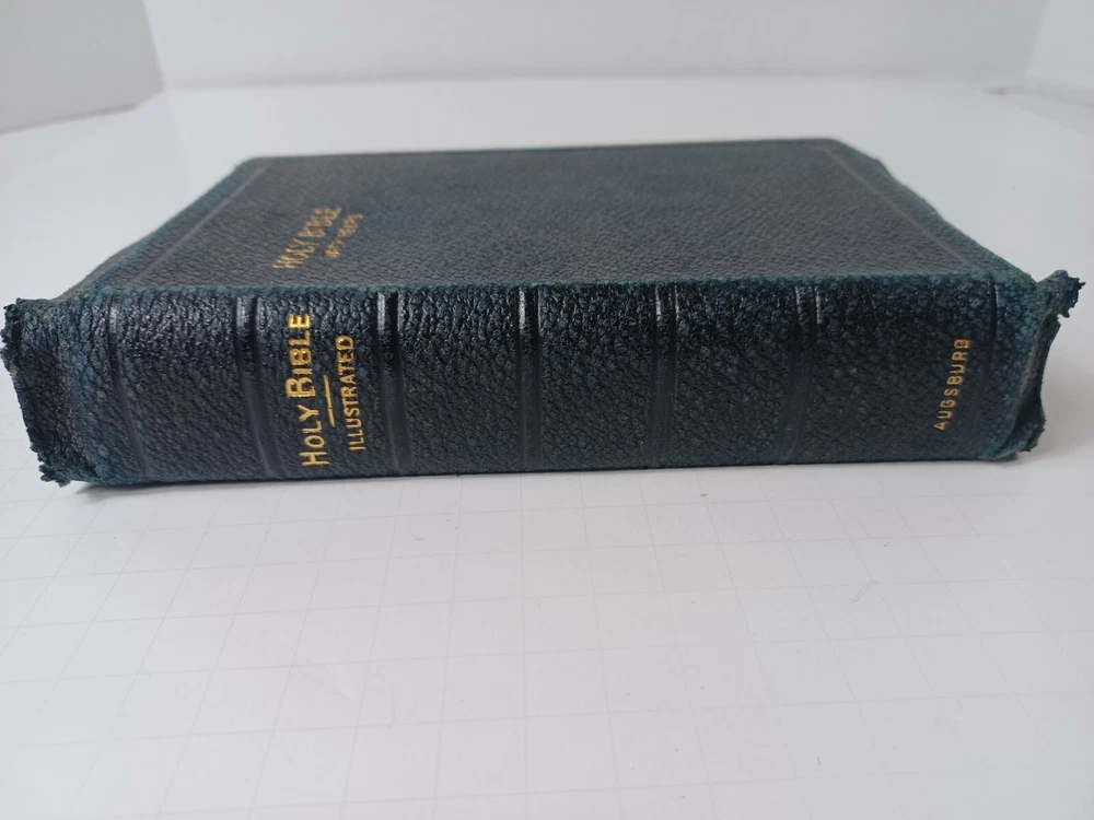 Vintage Augsburg Holy Bible with Helps - Illustrated Black Leather 1940's good condition, age related wear to cover, writing on presentation page, no folds, see pictures for details many other bibles and books in our store 7.25" x 5" x 1.5" 1 lb 8 oz Buy with confidence, shipped with care Shipped USPS