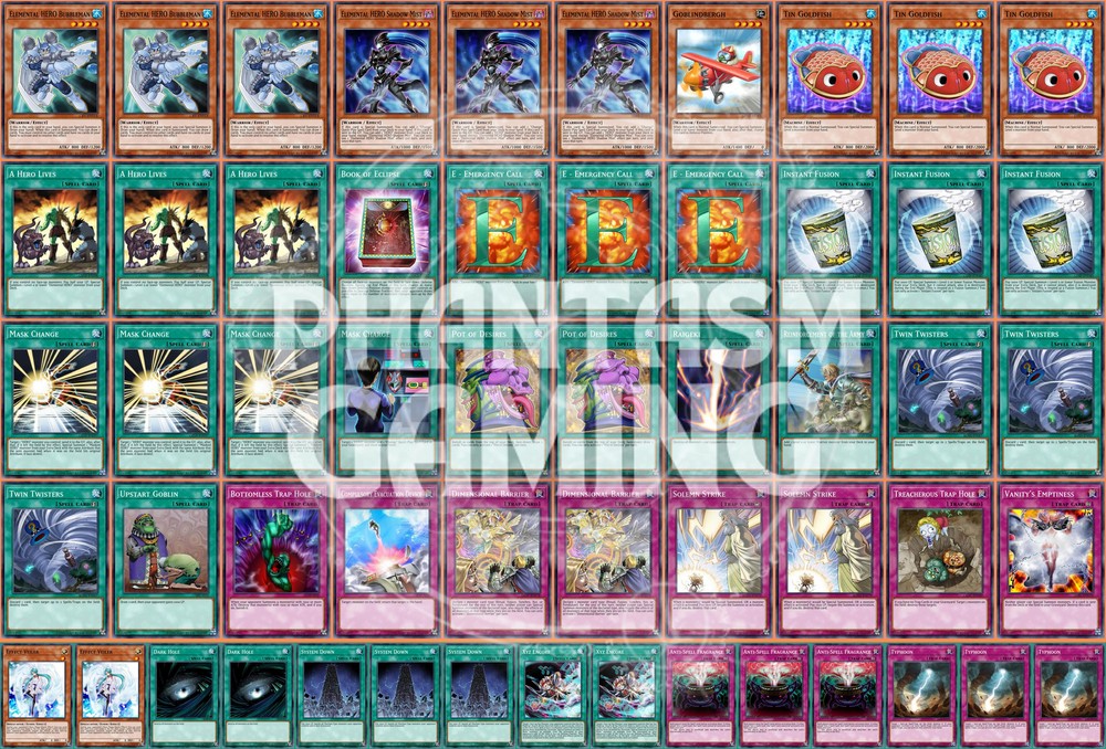 Deck Name: Awesome Hero (ABC) (B) # Main Deck (40) 3 - Elemental HERO Bubbleman 3 - Elemental HERO Shadow Mist 1 - Goblindbergh 3 - Tin Goldfish 3 - A Hero Lives 1 - Book of Eclipse 3 - E - Emergency Call 3 - Instant Fusion 3 - Mask Change 1 - Mask Charge 2 - Pot of Desires 1 - Raigeki 1 - Reinforcement of the Army 3 - Twin Twisters 1 - Upstart Goblin 1 - Bottomless Trap Hole 1 - Compulsory Evacuation Device 2 - Dimensional Barrier 2 - Solemn Strike 1 - Treacherous Trap Hole 1 - Vanity's Emptiness # Side Deck (15) 2 - Effect Veiler 2 - Dark Hole 3 - System Down 2 - Xyz Encore 3 - Anti-Spell Fragrance 3 - Typhoon You will receive all of the following cards listed above. Most cards will will be in near mint condition. In the case of certain older cards we will do our best but some cards may be light or even moderatly played in extreme condtions. Those conditions being the card has not been reprinted in a number of years and con no longer be easily purchased in light or near mint condition. Set, Rarity, and Edition will vary and cannot be special requested. These lists are constructed with least expensive rarities we have available in stock. All cards are play legal copies. Note: If purchasing a Yugioh Deck all Speed duel cards are 100% legal at all levels of play. Store Policies Here at PMG_LLC , we pride ourselves on having the best customer service around. If you have any questions or can't seem to find something that you want please do not hesitate to contact us. We will do our best to respond to all questions within one business day. Hours of Operation: Monday-Friday: 2:30pm - 10:00pm Saturday- 10:00am - 8:00pm Sunday 11:00am - 5:30pm Note: We are closed all national holidays. Info: Thank you for choosing PMG_LLC . We appreciate your business. We ship Monday through Friday to make sure you get your deck as quickly as possible. All orders priority orders can use combined shipping. In order to use the combined shipping your whole purchase needs to be checked out as one order. We ship once we have received your payment and payment has cleared. As always if you have any questions or concerns please feel free to contact us via email. Shipping Information: We ship Monday through Friday, barring national holidays during which the United States Postal Service is closed. If you purchase a card on Friday or Saturday please bear in mind it will not ship until Monday. US Shipping: First Class Mail : Free. Comes with tracking information. Priority Mail with Delivery Confirmation : $9.99 All orders are shipped in appropriate protective material inside bubble mailers. International Shipping: We do not offer international Shipping Return Policy: You must return items sold and fulfilled by PMG_LLC within 30 days of delivery to be eligible for a refund. Returns which are damaged in the mail due to improper return packaging will receive partial refunds. We will process a full refund for all items returned in their original condition. In order for us to process your full refund you must include the full name associated with the order as well as the eBay order number inside the return packaging. We will not process returns which do not include the buyer's name and order number. Requirements: Please return items with the original plastic packaging. Failure to do so may result in a partial refund. Also you must inform us of any returns you may wish to process before sending them back. Any items simply send back to us without prior contact will not be eligible for refunds. Important Notes Remember that to benefit from our domestic combined shipping on priority orders you must to pay in a single payment. If you place two separate priority orders you will be charged the $7.50 shipping fee for both orders. If you place multiple orders for Priority shipping you will be charged the corresponding shipping costs for each order, even if you place the orders on the same day. We do not refund shipping costs as we tend to package orders throughout the day and may not notice that you would otherwise have qualified for combined shipping. We want to provide you with 5 Star service and earn your Positive Feedback, so if for any reason you are not happy with your transaction, contact us before leaving feedback. Business Day - Our business day runs from Monday to Friday from 9am to 4pm, excluding US national holidays. Any orders placed or payments cleared less than 4 hours before the close of business will be considered orders from the following business day.