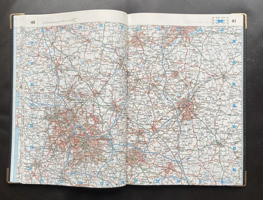 BARTHOLOMEW : GREAT BRITAIN ROAD ATLAS : 1989 : in IVECO TRUCK LEATHER COVER. THIS LEATHER BOUND ROAD ATLAS WAS PRESENTED TO MY DAD FROM HIS WORK IVECO FORD TRUCKS AND THIS ITEM IS IN A GOOD USED CONDITION SO PLEASE HAVE A GOOD LOOK AT ALL OF THE PICTURES TO GET A GOOD UNDERSTANDING OF THE CONDITION OF THIS ITEM THIS ITEM WILL BE WELL PACKAGED AND WILL BE POSTED OUT TO YOU WITH HERMES AND A TRACKING NUMBER WILL BE PROVIDED PLEASE TAKE YOUR TIME AND HAVE A GOOD LOOK AT ALL OF MY OTHER LISTINGS ON EBAY