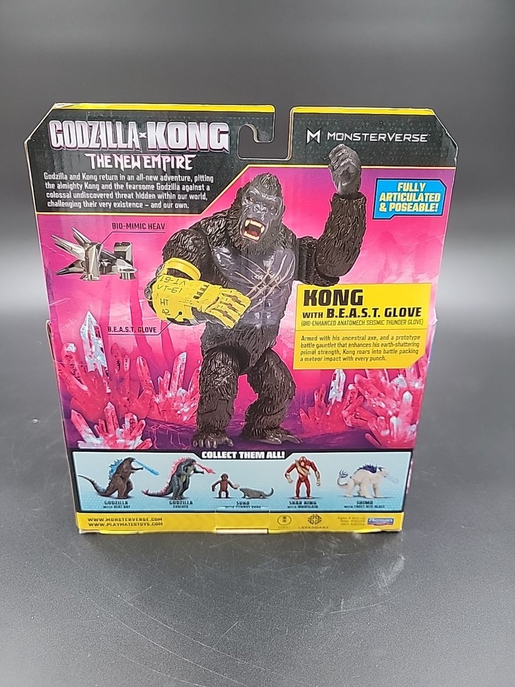 Step into the world of monstrous mayhem with the BEAST Glove Kong action figure, standing at an impressive 6 inches tall. This collectible is directly inspired by the epic film "Godzilla x Kong: The New Empire" and is brought to life by Playmates Toys, ensuring fans get a true-to-movie experience. The figure showcases Kong in all his glory, complete with the B.E.A.S.T. glove that adds an extra edge to your display or play. Crafted with meticulous attention to detail, this Kong figure is a must-have for any collector or enthusiast. The multicolored design captures the Titanus Kong's majestic presence, and it comes equipped with the formidable Bio-Mimic Heav accessory. Whether you're recreating iconic scenes or displaying it proudly among your collection, this action figure is a towering addition that promises to thrill.