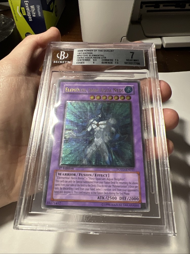 This card is a must-have for any serious collector! The Beckett 7 grade ensures its near-mint condition, and the 1st edition Ultimate Rare print looks stunning. The colors pop, and the holographic effect is mesmerizing. A fantastic addition to any Yu-Gi-Oh! deck or display—absolutely worth it!