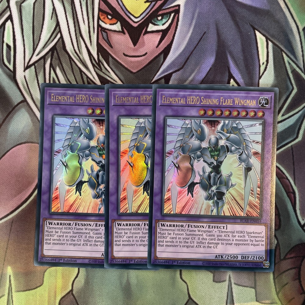 This playset is mixed edition (you will receive a mixture of unlimited and 1st edition cards) Listing Template 2018 Home About Us Shipping Returns View Feedback Contact Us BLAR-EN054 x3 Elemental HERO Shining Flare Wingman Ultra Excellent Cond Yugioh These cards are in excellent condition as per the photos. You will receive a playset of cards. (x3) Thanks for viewing! Thanks for viewing! Please check out our eBay store for more cards and don’t forget to use our promotional offers to save money on multiple items! We offer COMBINED INTERNATIONAL SHIPPING! Please contact us and ask us to combine multiple cards in your shipment to save on postage costs! International tracking is included on all orders over £40. If you require a tracking code under this amount it is an additional charge of £6.50. Please add this to your order or contact us for more information. We provide postage free in the UK! All of our single cards are sleeved, with a taped Toploader to ensure maximum protection, and the best overall condition of your cards! Combined orders may in the same sleeve, unless requested otherwise. Do you want to earn extra cash for your old cards? Clear out your binder and send us photos of what you have! We will happily send you an offer and sort out postage to make it hassle free. There's no harm in trying! Message us now! Free UK Delivery! Honest Sellers. We take care of the cards so you can worry less about the fuss and more about winning, competing and collecting. About Us We started selling collectable cards over 6 years ago after selling off our own childhood Yu-Gi-Oh collection. We then rediscovered our passion for trading card games. Ever since, my brother and I have been trying to ensure that we provide a range of cards within the fastest possible time to ensure you can build your collection as you’d like it! With over 35,000 positive feedback we strive for quality customer service, aiming to give the service that we would like to receive and stock a huge inventory of new and vintage collectable cards from popular games such as Yu-Gi-Oh and Pokemon so there’s something for everyone! Our goal is that we hope to build a collectable card community as passionate about collectable cards as we are! Contact Us The best way to get in contact is through eBay’s ‘contact seller’ button where we’ll try to get back to you as soon as possible. Feedback We always prioritise your buying experience so you can shop without worry. Contact us if there’s any part of an order you were dissatisfied with as we hope to resolve any issues as soon as possible. Buy with confidence. View Our Categories