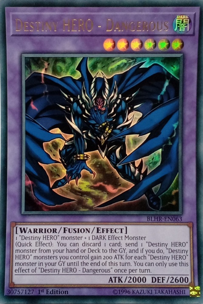 BLHR-EN063 DESTINY HERO - DANGEROUS ULTRA RARE 1ST EDITION ALL YU-GI-OH CARDS I SELL ARE KONAMI TOURNAMENT LEGAL. CARDS ARE ALL NEAR MINT TO LIGHTLY PLAYED CONDITION. POSTAGE IS FREE SO YOU CAN BUY AS MANY CARDS AS YOU WANT FROM US AND NOT PAY A PENNY POSTAGE. IF YOU HAVE ANY QUESTIONS PLEASE FEEL FREE TO CONTACT ME. Track Page Views With Auctiva's FREE Counter