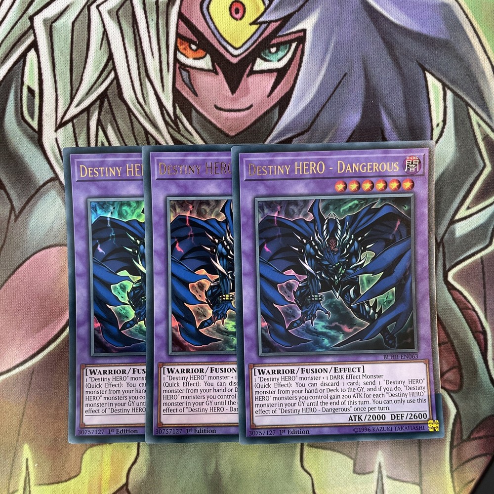 This playset is mixed edition (you will receive a mixture of unlimited and 1st edition cards) Listing Template 2018 Home About Us Shipping Returns View Feedback Contact Us BLHR-EN063 x3 Destiny HERO - Dangerous Ultra Rare Excellent Condition Yugioh These cards are in excellent condition as per the photos. You will receive a playset of cards. (x3) Thanks for viewing! Thanks for viewing! Please check out our eBay store for more cards and don’t forget to use our promotional offers to save money on multiple items! We offer COMBINED INTERNATIONAL SHIPPING! Please contact us and ask us to combine multiple cards in your shipment to save on postage costs! International tracking is included on all orders over £40. If you require a tracking code under this amount it is an additional charge of £6.50. Please add this to your order or contact us for more information. We provide postage free in the UK! All of our single cards are sleeved, with a taped Toploader to ensure maximum protection, and the best overall condition of your cards! Combined orders may in the same sleeve, unless requested otherwise. Do you want to earn extra cash for your old cards? Clear out your binder and send us photos of what you have! We will happily send you an offer and sort out postage to make it hassle free. There's no harm in trying! Message us now! Free UK Delivery! Honest Sellers. We take care of the cards so you can worry less about the fuss and more about winning, competing and collecting. About Us We started selling collectable cards over 6 years ago after selling off our own childhood Yu-Gi-Oh collection. We then rediscovered our passion for trading card games. Ever since, my brother and I have been trying to ensure that we provide a range of cards within the fastest possible time to ensure you can build your collection as you’d like it! With over 35,000 positive feedback we strive for quality customer service, aiming to give the service that we would like to receive and stock a huge inventory of new and vintage collectable cards from popular games such as Yu-Gi-Oh and Pokemon so there’s something for everyone! Our goal is that we hope to build a collectable card community as passionate about collectable cards as we are! Contact Us The best way to get in contact is through eBay’s ‘contact seller’ button where we’ll try to get back to you as soon as possible. Feedback We always prioritise your buying experience so you can shop without worry. Contact us if there’s any part of an order you were dissatisfied with as we hope to resolve any issues as soon as possible. Buy with confidence. View Our Categories