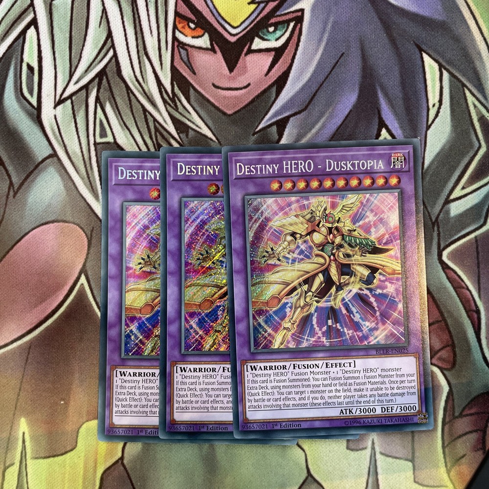 Listing Template 2018 Home About Us Shipping Returns View Feedback Contact Us BLLR-EN025 x3 Destiny HERO - Dusktopia Secret Rare Excellent Condition Yugioh These cards are in excellent condition as per the photos. You will receive a playset of cards. (x3) Thanks for viewing! Thanks for viewing! Please check out our eBay store for more cards and don’t forget to use our promotional offers to save money on multiple items! We offer COMBINED INTERNATIONAL SHIPPING! Please contact us and ask us to combine multiple cards in your shipment to save on postage costs! International tracking is included on all orders over £40. If you require a tracking code under this amount it is an additional charge of £6.50. Please add this to your order or contact us for more information. We provide postage free in the UK! All of our single cards are sleeved, with a taped Toploader to ensure maximum protection, and the best overall condition of your cards! Combined orders may in the same sleeve, unless requested otherwise. Do you want to earn extra cash for your old cards? Clear out your binder and send us photos of what you have! We will happily send you an offer and sort out postage to make it hassle free. There's no harm in trying! Message us now! Free UK Delivery! Honest Sellers. We take care of the cards so you can worry less about the fuss and more about winning, competing and collecting. About Us We started selling collectable cards over 6 years ago after selling off our own childhood Yu-Gi-Oh collection. We then rediscovered our passion for trading card games. Ever since, my brother and I have been trying to ensure that we provide a range of cards within the fastest possible time to ensure you can build your collection as you’d like it! With over 35,000 positive feedback we strive for quality customer service, aiming to give the service that we would like to receive and stock a huge inventory of new and vintage collectable cards from popular games such as Yu-Gi-Oh and Pokemon so there’s something for everyone! Our goal is that we hope to build a collectable card community as passionate about collectable cards as we are! Contact Us The best way to get in contact is through eBay’s ‘contact seller’ button where we’ll try to get back to you as soon as possible. Feedback We always prioritise your buying experience so you can shop without worry. Contact us if there’s any part of an order you were dissatisfied with as we hope to resolve any issues as soon as possible. Buy with confidence. View Our Categories