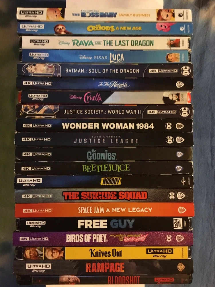 UP FOR AUCTION IS Boss Baby: Family Business, Soul Disney PIXAR, The CROODS: A New Age, RAYA and The Last Dragon Disney, LUCA Disney PIXAR, DC Batman: Soul Of The Dragon, In The Heights, Cruella Disney, Black Widow, DC Justice Society: World War II 2, DC Wonder Woman 1984, DC Zack Snyder’s Justice League, The Forever Purge, The GOONies, BeetleJuice, Hitman’s Wife’s Bodyguard, NOBODY , Jungle Cruise Disney, DC The Suicide Squad, Space Jam: A New Legacy, Free Guy, DC Birds Of Prey, Knives Out, Rampage, Bloodshot, The Gentlemen, Deadpool, Deadpool 2, Deadpool 2 Super Duper Cut, Advengers: Infinity War, Avengers: Endgame, Once Upon A Time In Hollywood, DC Justice League, 1917, Ford V Ferrari, Scoob!, The Call Of The Wild, DC Justice League Dark: Apokolips War, Trolls: World Tour, The Equalizer 2, YESTERDAY, Doctor Sleep, SONIC The Hedgehog, TENET, Love And Monsters, SHAZAM!, Onward, VFW, Overlord, IT: Chapter Two, Rambo: The Fight Continues, Rambo: Last Blood, John Wick, John Wick 2, John Wick 3, 3 From Hell, STUBER, HUSTLERS, Fantastic Beasts: And Where To Find Them, Fantastic Beasts: The Crimes Of Grindelwald, PACIFIC RIM: Uprising, MORTAL ENGINES, DC Suicide Squad, DUMBO Disney, Abominable DreamWorks, Ralph Breaks The Internet Disney, Toy Story 4 Disney PIXAR, BUMBLEBEE, Spider-Man: Into The Spider-Verse, Spider-Man: Far From Home, Ant-Man And The Wasp, Captain Marvel, X-Men: Dark Phoenix, Midway, First Man, CREED II 2, Lord Of War, DC The Death Of Superman, Bad Boys For Life, HOOK, Tom Cruise Mission: Impossible: Fall Out, Mortal Kombat Legends: Scorpion’s Revenge, DUNKIRK, Ghostbusters 1984, Ghostbusters: Answer The Call 2016, Ghostbusters: Answer The Call 2016 3D Copy, Maze Runner: Death Cure, Atomic Blonde, Red Sparrow, Hacksaw Ridge, XXX: Return Of Xander Cage, Deepwater Horizon, Transformers: The Last Knight, Power Rangers, Jumanji: Welcome To The Jungle, Hunter Killer, VENOM: Let There Be Carnage, CANDYMAN, Ghostbusters: AFTERLIFE, DUNE, PoKéMoN: Detective PiKACHU, STANLEY KUBRICK’S: THE SHINING, 1989 PET SEMATARY, 2019 PET SEMATARY, 007 No Time To Die, ANNA, American Assassin, GEMINI MAN, MIB: International, HELLBOY 2019, Angel Has Fallen, Murder On The Orient Express, The Predator 2018, The Mule, SICARIO: Day Of The Soldado, ROBIN HOOD 2018, Man On A Ledge, River Runs Red, Bad Times At The El Royale, GLASS, AD ASTRA, The Hitman’s Bodyguard, Cold Pursuit, ALITA: Battle Angel, GODZILLA: King Of The Monsters, Jurassic World: Fallen Kingdom, The Huntsman: Winter’s War, A STAR IS BORN, DOLITTLE, A BEAUTIFUL DAY IN THE NEIGHBORHOOD, ALITA: Battle Angel, ALITA: Battle Angel 3D, Aladdin 2019 Disney, The HOUSE With A CLOCK IN Its WALLS, The LION KING 2019 Disney, The Secret Life Of PeTs 2, BIG HERO 6 Disney, The KID Who Would Be KING, DESPICABLE ME 3, The ANGRY BIRDS MOVIE 2, CARS 3 Disney - PIXAR, The LEGO MOVIE 2: The Second Part (BLU-RAY DISC ONLY NO ORIGINAL CASE OR BOX ART) COMES WITH A SLIM CASE AS SEEN IN THE PICTURE. This BLU-RAY DISC was part of a 4K ULTRA HD + BLU-RAY + DIGITAL combo set. I had no use for the BLU-RAY copy so I’m selling it. It is brand new and ships in a slim case without cover art.Thank You.. If you purchase 3 or more movies ill ship them First Class Mail.. PLEASE VIEW PICTURES CAREFULLY AS THEY ARE A PART OF THE DESCRIPTION. WHEN YOU BUY MORE THAN ONE ITEM, YOU WILL SAVE ON SHIPPING. I DO OFFER A COMBINE SHIPPING DISCOUNT. I DESCRIBE ITEMS TO THE BEST OF MY ABILITY AND WOULD NOT MISREPRESENT ANYTHING INTENTIONALLY. I CAN SOMETIMES OVERLOOK SOMETHING. (I will do International shipping if You pay the shipping cost) PLEASE LEAVE FEEDBACK FOR ME AS I WILL FOR YOU AND IF THERE IS A PROBLEM PLEASE CONTACT ME BEFORE LEAVING NEGATIVE FEEDBACK . BY PURCHASING AN ITEM IT IS AN ACKNOWLEDGMENT THAT YOU HAVE READ AND FULLY UNDERSTAND THAT WE ARE IN AGREEMENT REGARDING MY (TERMS OF SERVICE). THANK YOU AND I AM ALWAYS AVAILABLE TO ANSWER ANY QUESTIONS OR CONCERNS. I strive to deliver 5-star customer service PLEASE PAY WITHIN 24 HOURS OF SENT INVOICE OR AFTER AUCTION CLOSES BUT IMMEDIATE PAYMENT IS PREFERRED UNLESS WE HAVE HAD A PRIOR AGREEMENT BEFORE CLOSE OF AUCTION. THANK YOU FOR LOOKING! HOPE YOU LIKE WHAT YOU SEE HAPPY BIDDING... Per rules of Ebay, Paypal is the only option I can advertise for payment - email any questions. WE ARE TYPICALLY VERY QUICK AT SHIPPING. IF YOU PAY EARLY IT MAY GO OUT THE SAME DAY. IF YOU PAY LATE IN THE DAY. IT WILL BE THE NEXT DAY. OCCASIONALLY WE ARE AWAY FOR A DAY OR A WEEKEND AND ONCE A YEAR I GO ON WEEK VACATION AND WONT BE ABLE TO SHIP ANYTHING UNTIL THE FOLLOWING BUSINESS DAY. <<>>