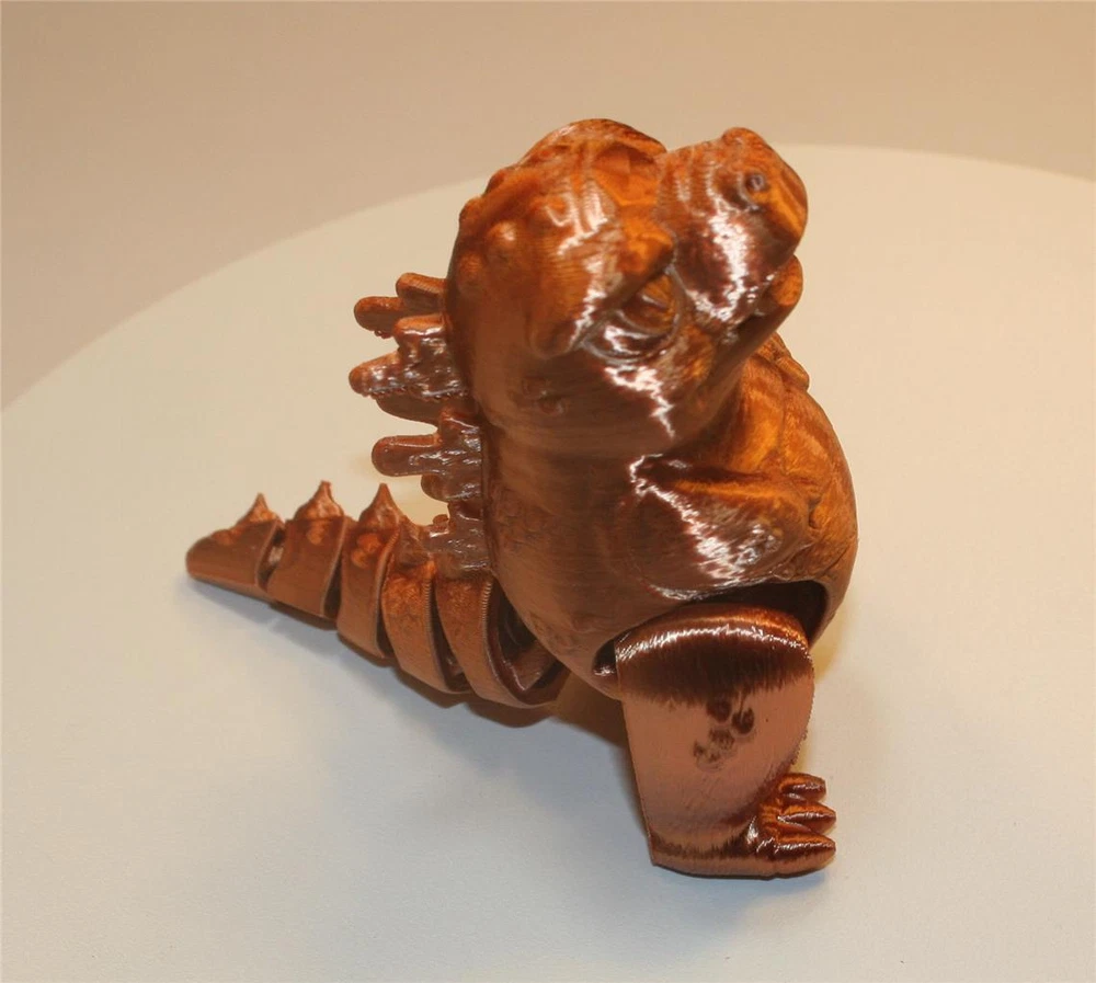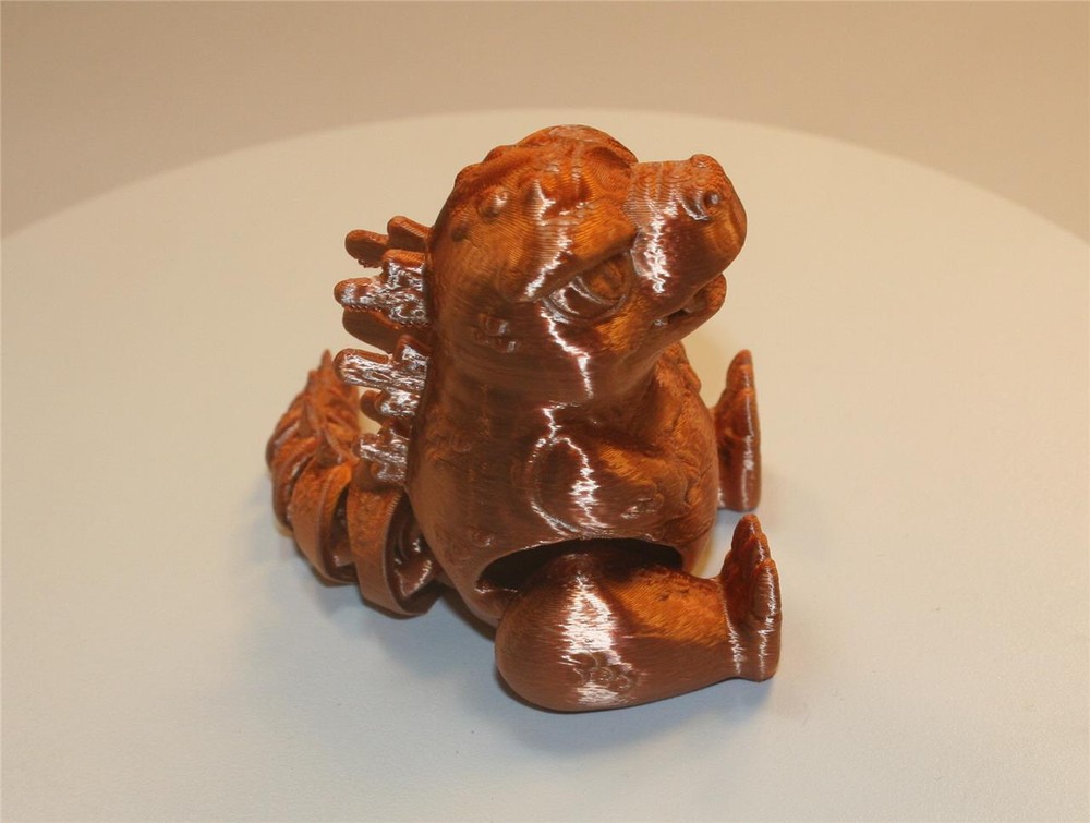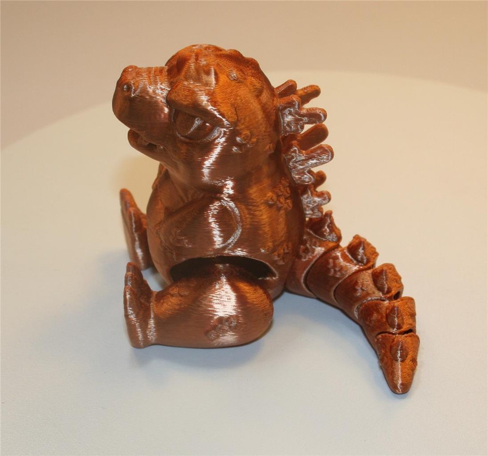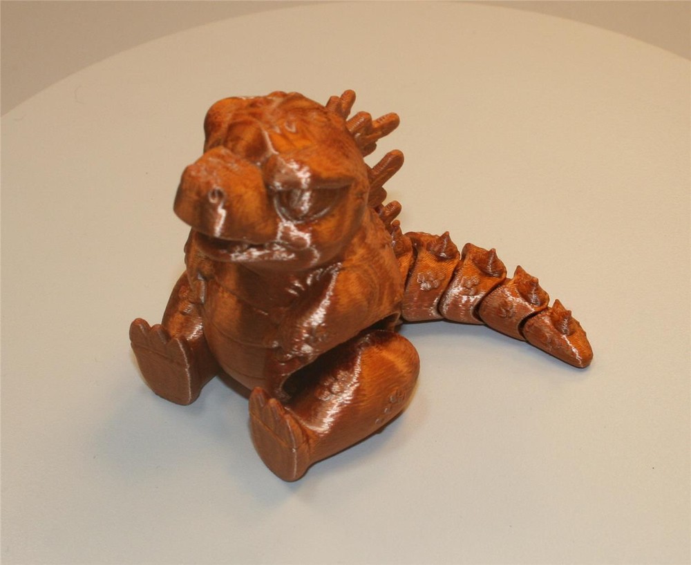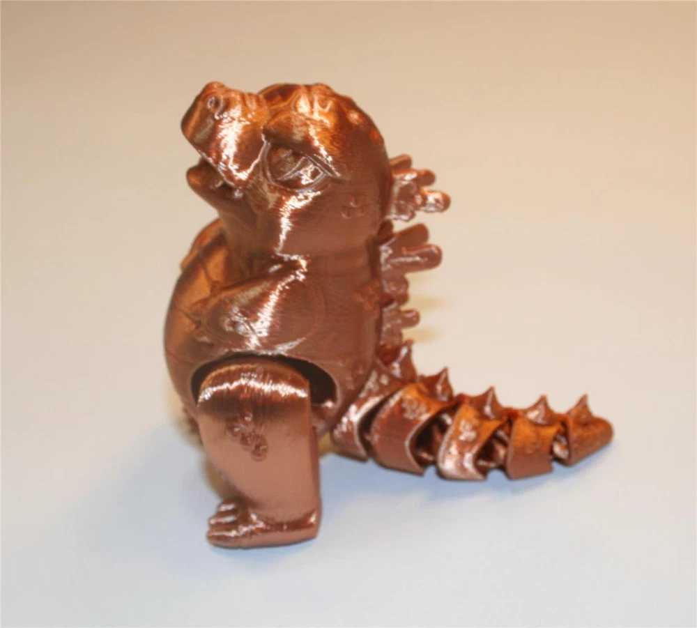 Baby Godzilla 3D Printed Articulated Flexi Fidget Toy Red Copper Bronze Baby Godzilla 3D Printed Articulated Flexi Fidget Toy Red Copper Bronze Click images to enlarge Description Baby Godzilla Discover the enchanting Baby Godzilla: an exquisitely crafted Fidget Toy brought to life through 3D printing. With meticulous attention to detail, this Gozilla possesses a mesmerizing allure that is bound to captivate. Its articulated and jointed movement, making it a truly remarkable piece. Created with precision by 3D printing technology. Material: 3D Printed PLA Color: Red Copper Silk Height: 3" Width: 2" Length: 3 1/2" Customizable Colors: We're here to make your vision a reality. If you desire a specific color scheme, send us a message with your request. Disclaimer: Please be aware that 3D printed toys may pose potential hazards and risks to children and adults. Unlike commercially produced toys that are tested and regulated for safety, 3D printed toys are not subjected to the same standards and may contain design or manufacturing flaws that could cause harm. Additionally, the materials used in 3D printing may not be suitable for all ages or intended uses. Some materials may be toxic if ingested, and some 3D printed toys may have small parts that could be a choking hazard. Please exercise caution and use at your own risk when using 3D printed toys. It is recommended to supervise children during playtime and inspect toys for any signs of wear or damage before use. By purchasing and using my products, you acknowledge and assume all risks and liabilities associated with their use. Track Page Views With Auctiva's Counter Get images that make Supersized seem small. 300+ Unique Listing Template Designs! Auctiva gets you noticed!