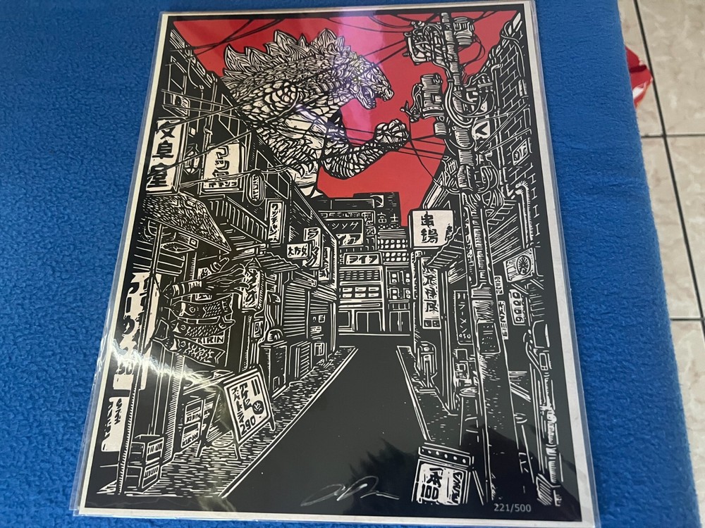 This Bam Box Geek Ultra Plus Box includes a limited edition Godzilla Art Print, numbered out of 500 and signed by the artist. This collectible is perfect for fans of movies and television, especially those who appreciate the awe-inspiring power of the King of Monsters. Along with the art print, the box may also include other pinback collectibles and lunchbox items. Don't miss out on this opportunity to add a unique and rare piece to your collection. Ship the same day Fast Fast THIS ITEM SHIP HEAVY BOX AND LARGE BUBBLE WRAP FOR YOUR SATISFACTION Watch other auction Loot crate, Nerd Block, bam box, smuggle bounty, loot anime, horror block, FRIGHT CRATE, FRIGHT PACK , ZOBIE PRODUCTION, Geek Gear ,harry potter, wizard world , Disney and star wars Star Wars avengers dc batman willie Wonka Harry Potter terminator tombstone Adam west batman superman aliens fast and the furious Disney Yoda mandalorian boba fett joker mask frozen cows pins enamel pin, 8x10, 11x14 ,print , signed ,autograph ,Pokemon,