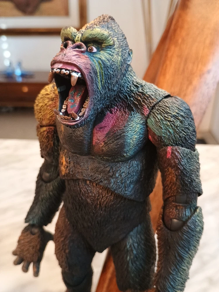 This is for two figurines one is Bandai Godzilla 2019 S.H MONSTER ARTS Godzilla and the other is Neca ultimate King Kong 7 inch figurine. In great used condition but one hand is missing from godzilla. King Kong is in perfect condition but no axe. No box. Thanks for watching.
