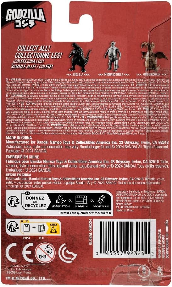 Further Details Title: Bandai Namco - Godzilla - Mecha Godzilla, 4" Transforming Egg Toy Figure Condition: New Description: Collect and transform these eggs into your favorite Godzilla monsters! Each figure is displayed in a clear package showing exactly which monster you will get. After transforming the egg, each figure stands approximately 4.5 inches tall. Display as an egg or transformed. For ages 4+. Age Level: 48.0 Brand: Godzilla Color: Mecha Godzilla Theme: Movie, Science Fiction Material: Polyvinyl Chloride Number of Pieces: 1 Type: TOY_FIGURE MPN: 92324 Each figure is displayed in a clear package showing exactly which monster you will get After transforming the egg, each figure stands approximately 4.5 inches tall For ages 4+ Collect and transform these eggs into your favorite Godzilla monsters! Display as an egg or transformed Missing Information? Please contact us if any details are missing and where possible we will add the information to our listing.