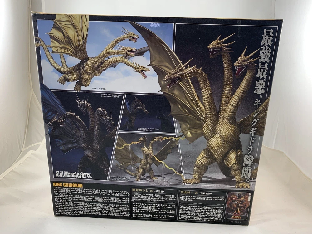 Up for sale! Bandai S.H. Monsterarts King Ghidora MISB! This is the original 2012 release 100% authentic, sealed and brand new. This toy is brand new in the box. The box is in very good condition with very minor shelf wear. Please check the photos. All of my items are stored in a temperature controlled, smoke free environment. I ship using USPS. I will pack your item with great care because I am a collector myself. You will be provided with a tracking number as soon as the item ships. If you have any questions or concerns, or any issues arise, please contact me. I am very easy to work with. I will work hard for your positive feedback, so Please leave me positive feedback when you receive your item. Thank you for looking!