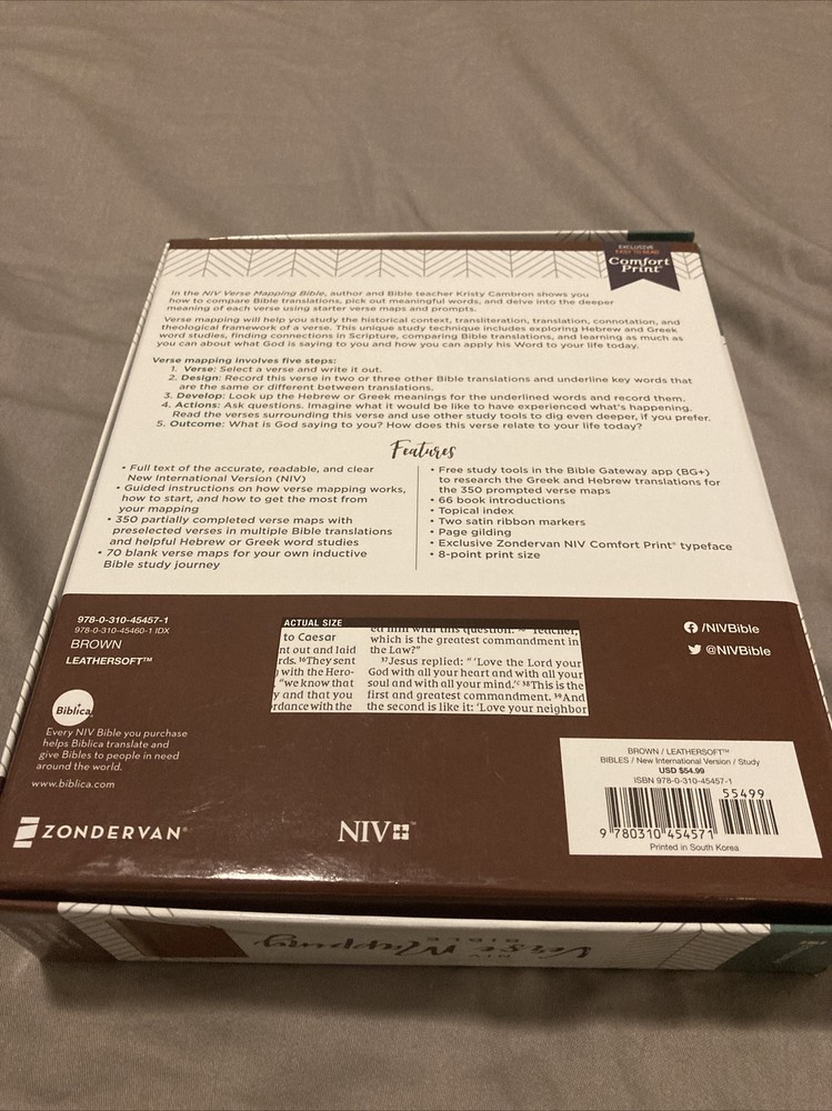 | Book Title | NIV Verse Mapping Bible, Leathersoft, Comfort Print : Find Connections in Scripture Using a Unique 5-Step Process [Brown] |