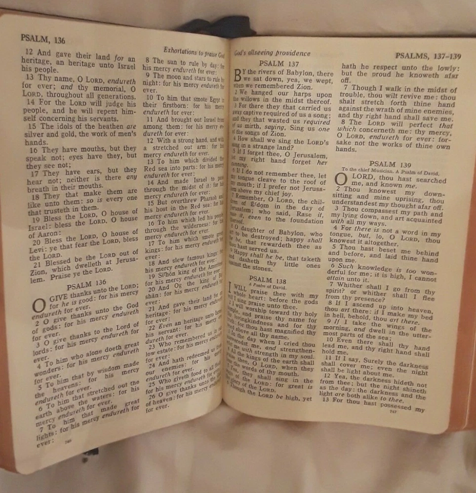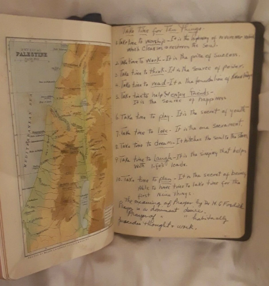 Black 1959 Collins Bible KJV Gilded Clear Type Press Scripture Calendar Maps Has handwritten notes
