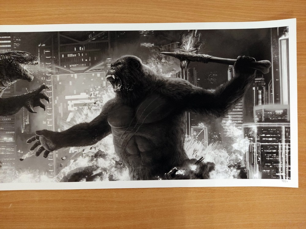 Godzilla vs. Kong - B&W Variant by Pablo Olivera Size: 36" x 12" inches Giclee print Hand-numbered edition of 50 ✅ Will be posted rolled in a strong tube with Kraft and tissue paper. ✅ 100% feedback Trusted eBay seller. The print is in excellent condition with no damage or creases, ships Rolled in a tube with Kraft and Tissue Paper. Check my feedback and bid with confidence. Sent with Royal Mail.