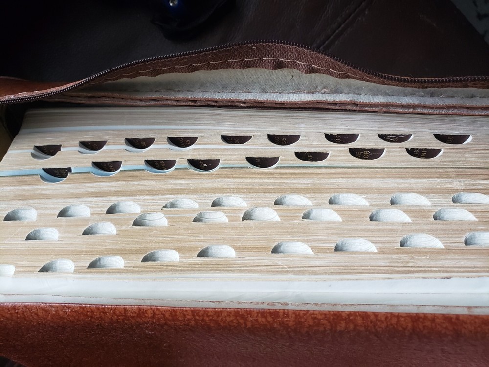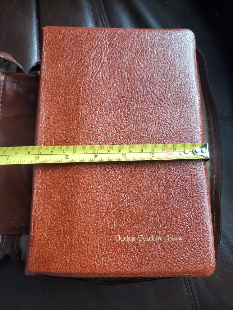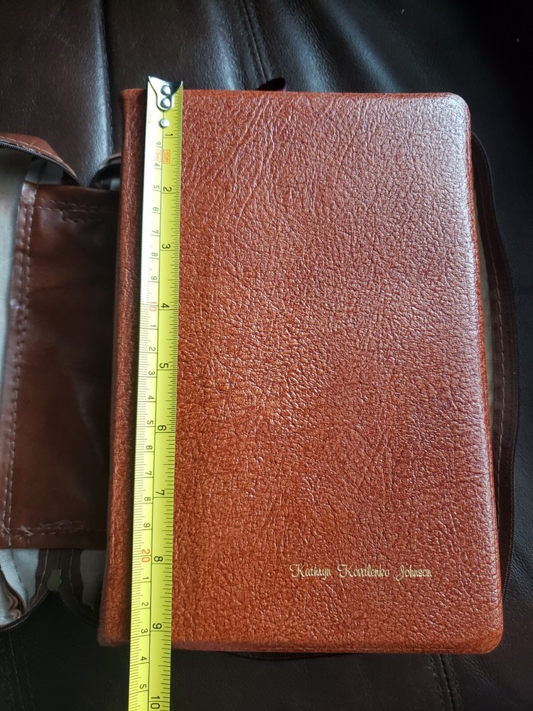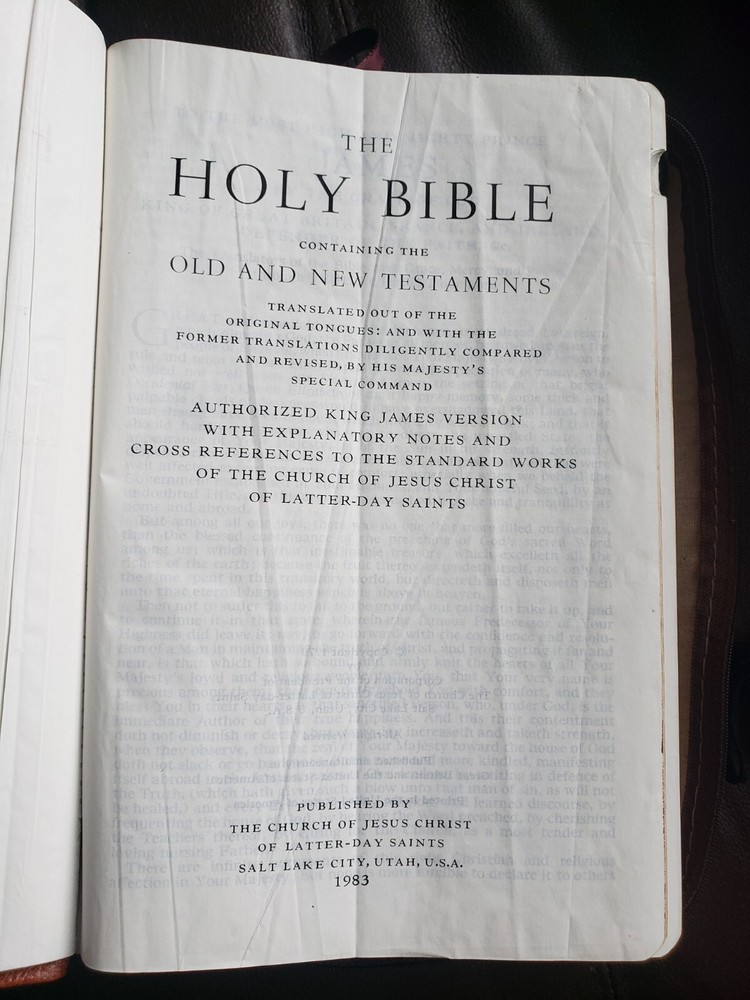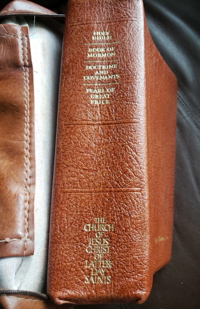 Brown LDS Quad Scriptures Leather Large 6" x 9" Size Tabbed 1983 Mormon w/Case! LDS Quad includes: Bible (KJV Old Testament and New Testament) Book of Mormon Doctrine and Covenants Pearl of Great Price Published by The Church of Jesus Christ of Latter-day Saints (2008) Condition: This is a 1983 edition of the scriptures. It is the hard to find size measuring Large 6" wide x 9" tall and about 2-1/2" thick. It is bound in Genuine Brown Leather; it has two maroon sewn-in ribbon markers and silver gilt page edges! This edition is tabbed (missing the first tab). Obvious wear and tear from previous owner, there are marked pages but very lightly. The last page seems to be glued to the carrying case (See Images). Always handled and packaged with care! Buy with confidence from a seller who takes the time to show you the details and not use just stock photos. Please check out all my pictures and email with any questions! Thanks for looking!