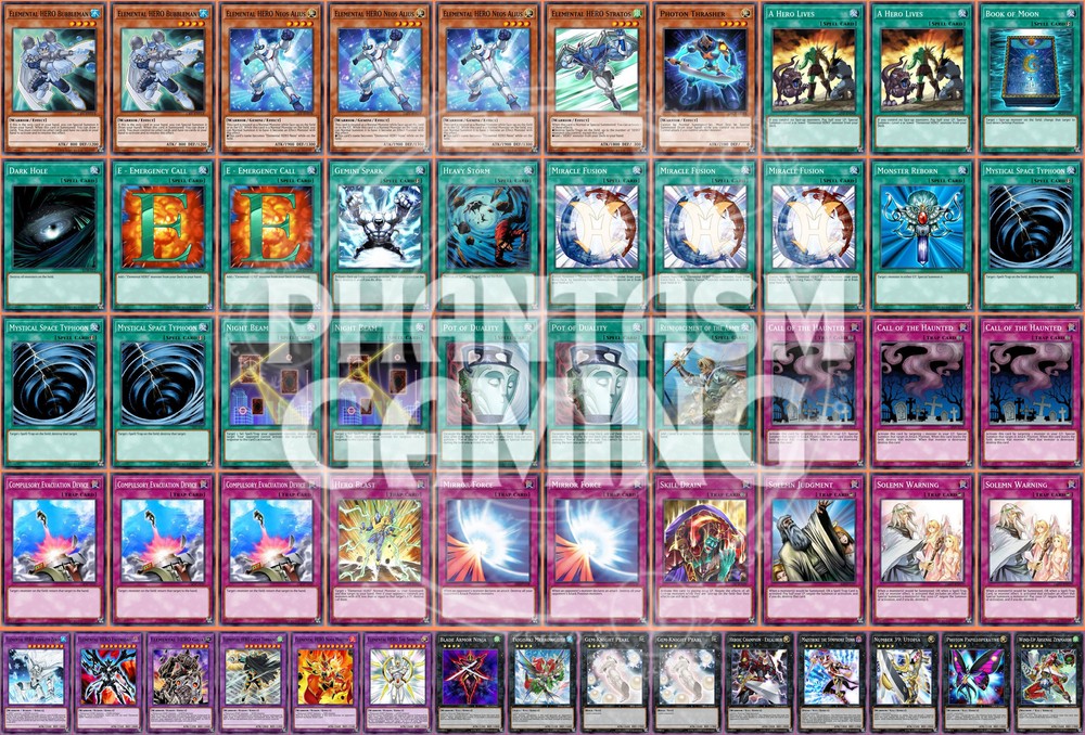Deck Name: Bubble Beat (B) (Wind-Up) # Main Deck (40) 2 - Elemental HERO Bubbleman 3 - Elemental HERO Neos Alius 1 - Elemental HERO Stratos 1 - Photon Thrasher 2 - A Hero Lives 1 - Book of Moon 1 - Dark Hole 2 - E - Emergency Call 1 - Gemini Spark 1 - Heavy Storm 3 - Miracle Fusion 1 - Monster Reborn 3 - Mystical Space Typhoon 2 - Night Beam 2 - Pot of Duality 1 - Reinforcement of the Army 3 - Call of the Haunted 3 - Compulsory Evacuation Device 1 - Hero Blast 2 - Mirror Force 1 - Skill Drain 1 - Solemn Judgment 2 - Solemn Warning # Extra Deck (15) 1 - Elemental HERO Absolute Zero 1 - Elemental HERO Escuridao 1 - Elemental HERO Gaia 1 - Elemental HERO Great Tornado 1 - Elemental HERO Nova Master 1 - Elemental HERO The Shining 1 - Blade Armor Ninja 1 - Evigishki Merrowgeist 2 - Gem-Knight Pearl 1 - Heroic Champion - Excalibur 1 - Maestroke the Symphony Djinn 1 - Number 39: Utopia 1 - Photon Papilloperative 1 - Wind-Up Arsenal Zenmaioh You will receive all of the following cards listed above. Most cards will will be in near mint condition. In the case of certain older cards we will do our best but some cards may be light or even moderatly played in extreme condtions. Those conditions being the card has not been reprinted in a number of years and con no longer be easily purchased in light or near mint condition. Set, Rarity, and Edition will vary and cannot be special requested. These lists are constructed with least expensive rarities we have available in stock. All cards are play legal copies. Note: If purchasing a Yugioh Deck all Speed duel cards are 100% legal at all levels of play. Store Policies Here at PMG_LLC , we pride ourselves on having the best customer service around. If you have any questions or can't seem to find something that you want please do not hesitate to contact us. We will do our best to respond to all questions within one business day. Hours of Operation: Monday-Friday: 2:30pm - 10:00pm Saturday- 10:00am - 8:00pm Sunday 11:00am - 5:30pm Note: We are closed all national holidays. Info: Thank you for choosing PMG_LLC . We appreciate your business. We ship Monday through Friday to make sure you get your deck as quickly as possible. All orders priority orders can use combined shipping. In order to use the combined shipping your whole purchase needs to be checked out as one order. We ship once we have received your payment and payment has cleared. As always if you have any questions or concerns please feel free to contact us via email. Shipping Information: We ship Monday through Friday, barring national holidays during which the United States Postal Service is closed. If you purchase a card on Friday or Saturday please bear in mind it will not ship until Monday. US Shipping: First Class Mail : Free. Comes with tracking information. Priority Mail with Delivery Confirmation : $9.99 All orders are shipped in appropriate protective material inside bubble mailers. International Shipping: We do not offer international Shipping Return Policy: You must return items sold and fulfilled by PMG_LLC within 30 days of delivery to be eligible for a refund. Returns which are damaged in the mail due to improper return packaging will receive partial refunds. We will process a full refund for all items returned in their original condition. In order for us to process your full refund you must include the full name associated with the order as well as the eBay order number inside the return packaging. We will not process returns which do not include the buyer's name and order number. Requirements: Please return items with the original plastic packaging. Failure to do so may result in a partial refund. Also you must inform us of any returns you may wish to process before sending them back. Any items simply send back to us without prior contact will not be eligible for refunds. Important Notes Remember that to benefit from our domestic combined shipping on priority orders you must to pay in a single payment. If you place two separate priority orders you will be charged the $7.50 shipping fee for both orders. If you place multiple orders for Priority shipping you will be charged the corresponding shipping costs for each order, even if you place the orders on the same day. We do not refund shipping costs as we tend to package orders throughout the day and may not notice that you would otherwise have qualified for combined shipping. We want to provide you with 5 Star service and earn your Positive Feedback, so if for any reason you are not happy with your transaction, contact us before leaving feedback. Business Day - Our business day runs from Monday to Friday from 9am to 4pm, excluding US national holidays. Any orders placed or payments cleared less than 4 hours before the close of business will be considered orders from the following business day.