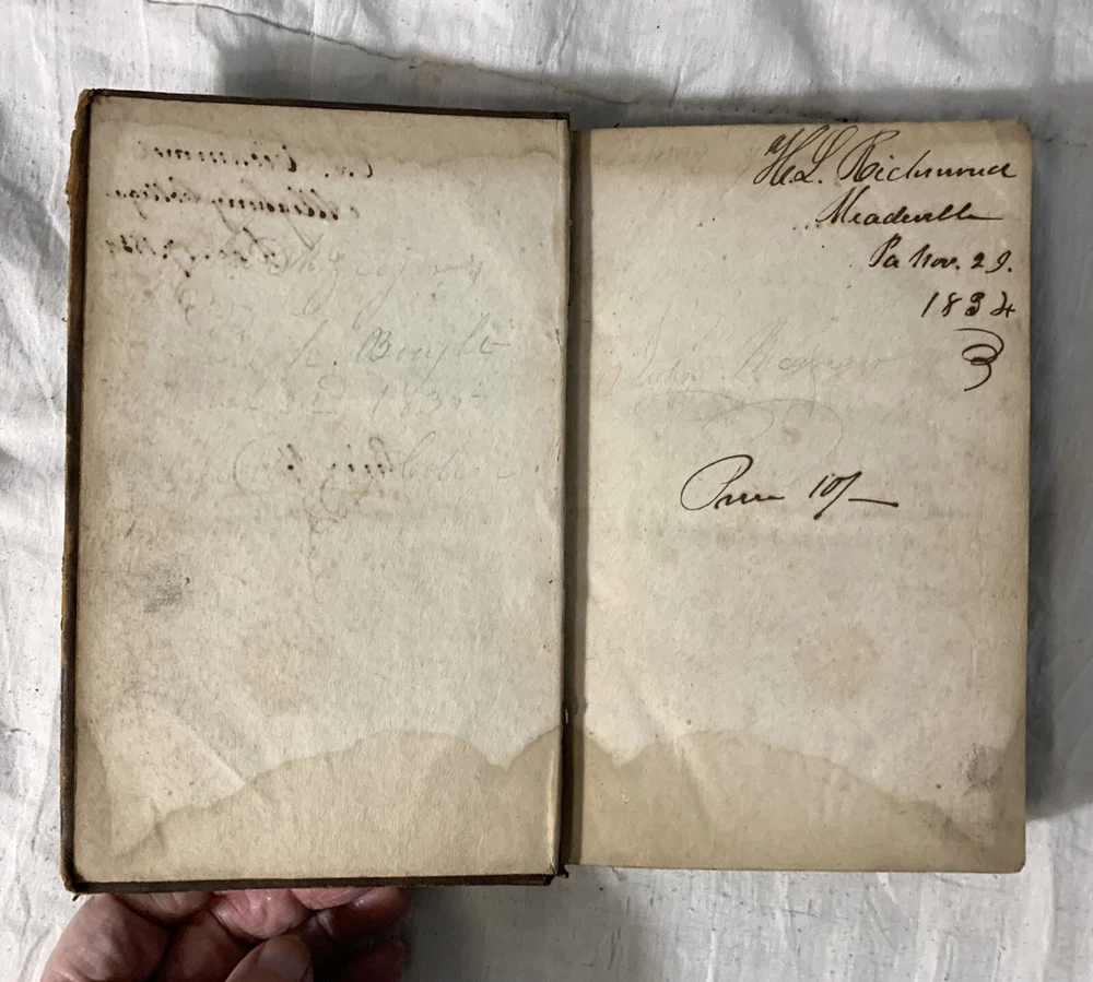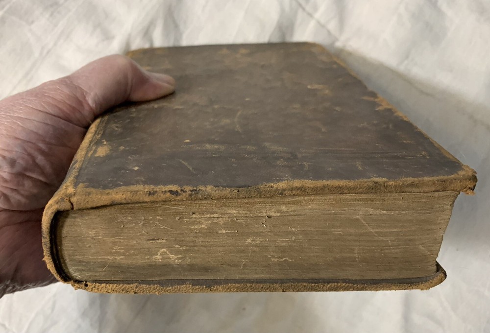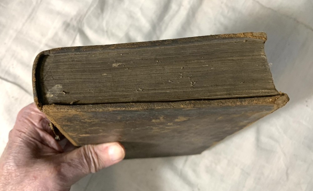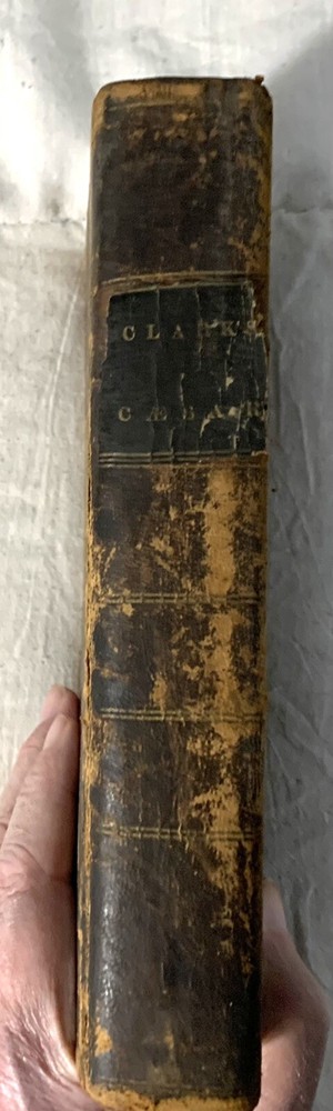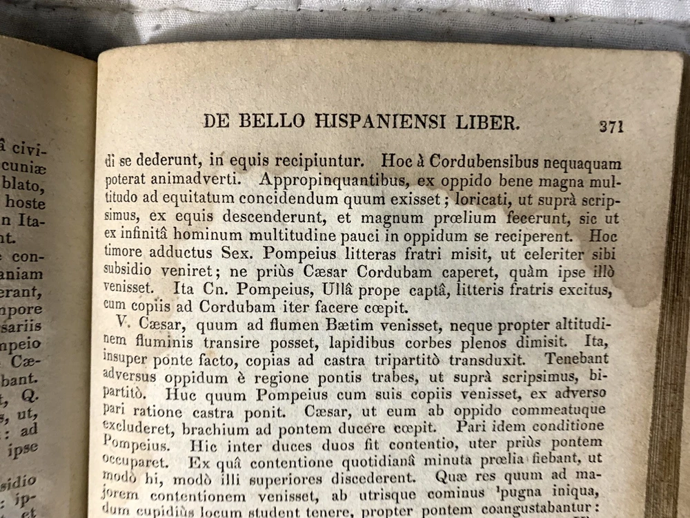 C Julii Caesaris Quae Extant Interpretatione et Notis Folding MAPS 1832 Cluverio. Eighth Edition. Fair to Good condition hardcover book. Size is about 8-1/2” by 5-1/2”. The Preface, a two page biography of C. Julius Caesar, and notes at the bottom of pages are in English. The text is in Latin. Full leather binding is square and tight. We’ll worn; leather cracked back spine edge. Spine label is hard to read and is lifting at one edge. Front endpapers, two of the next three pages; and one back blank page have fountain pen writing. Old moisture staining top and bottom of pages. Very few corners creased. Three foldout maps and one foldout illustration.