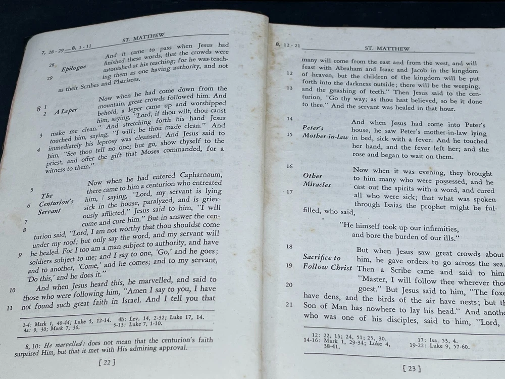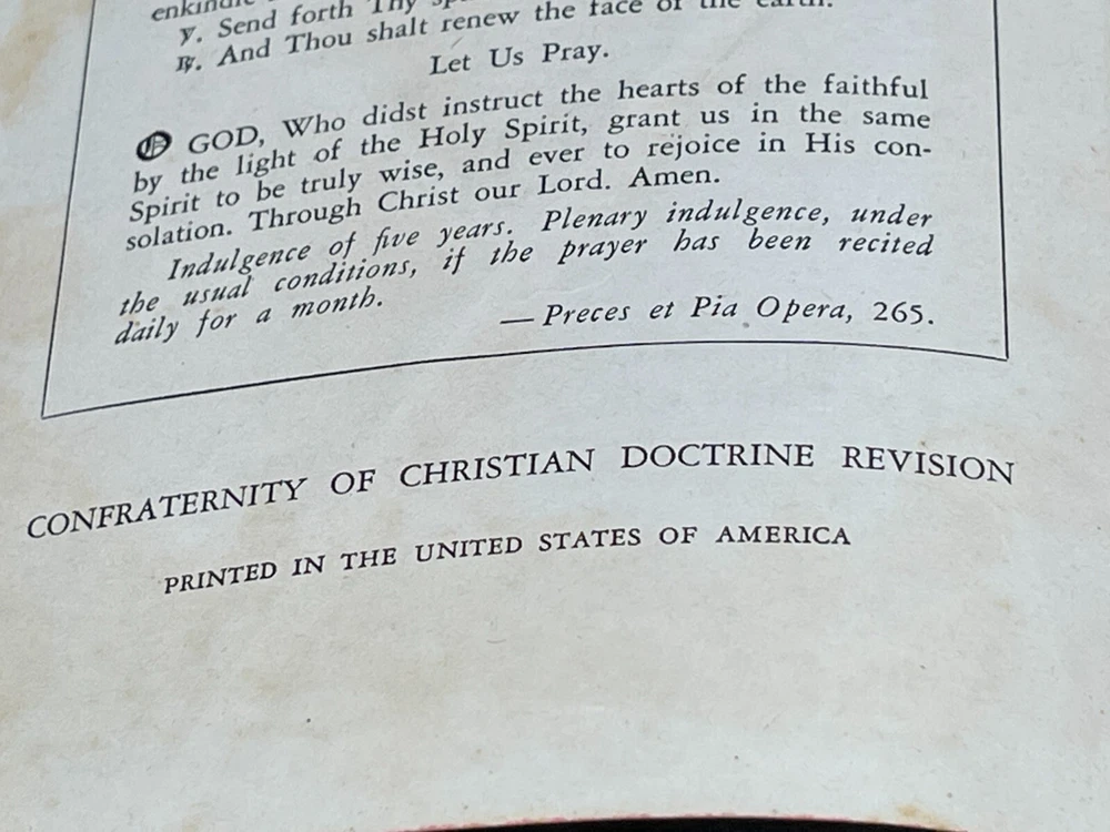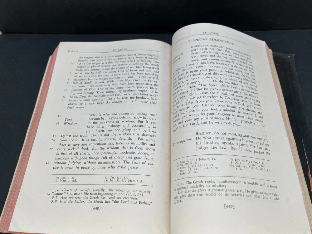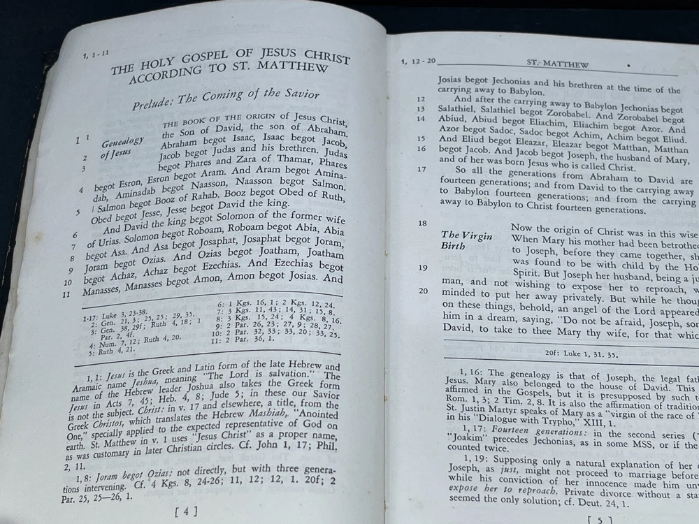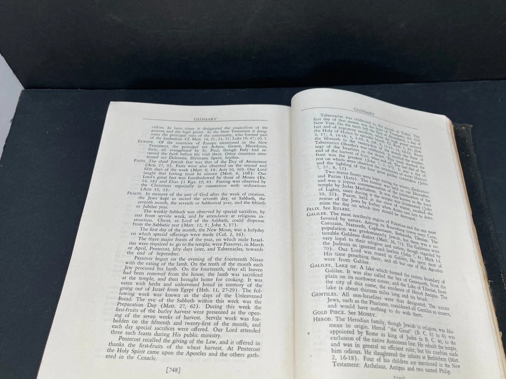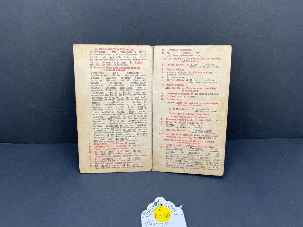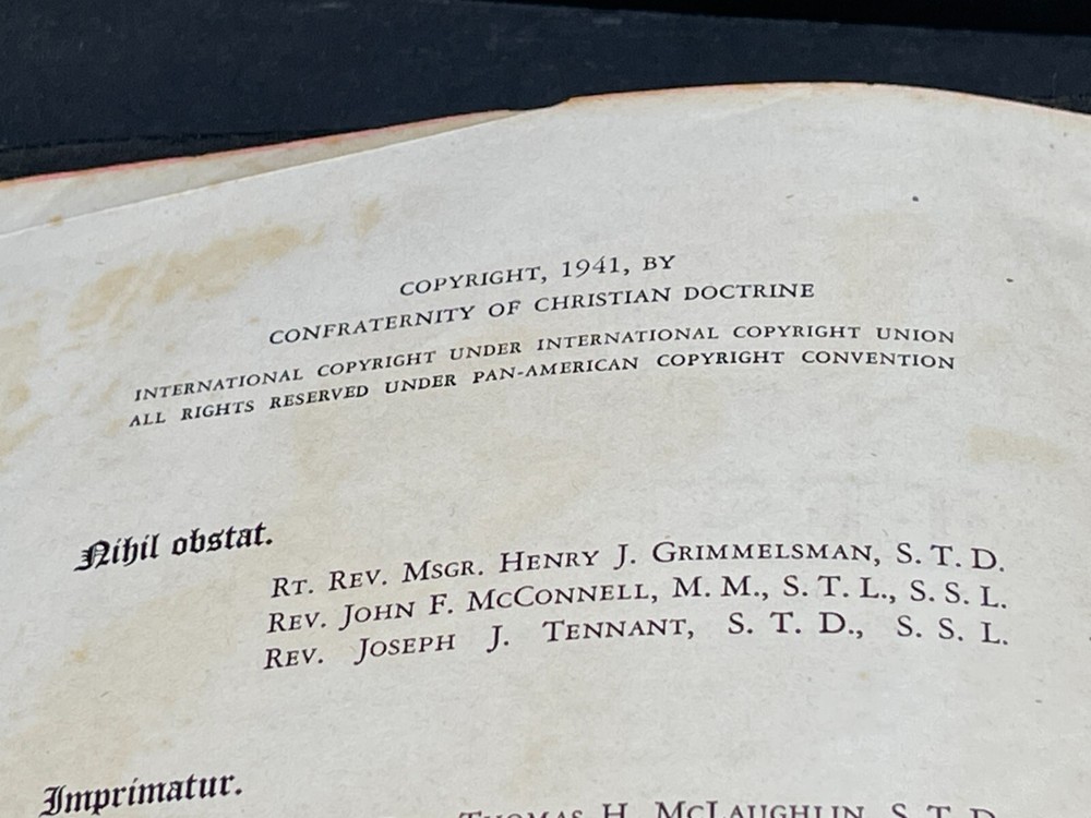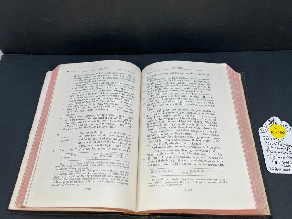 ONE(1) USED ANTIQUE NEW TESTAMENT BIBLE PUBLISHED IN 1947 BY ST. ANTHONY GUILD PRESS. THE BIBLE IS TRANSLATED FROM THE LATIN VULGATE. IT IS A REVISION OF THE CHALLONER-RHEIMS VERSION EDITED BY CATHOLIC SCHOLARS UNDER THE PATRONAGE OF THE EPISCOPAL COMMITTEE OF THE CONFRATERNITY OF CHRISTIAN DOCTRINE. THE BIBLE WAS PRINTED IN THE U.S.A. INCLUDED WITH THE BIBLE IS A 1947 MASS SERVER'S CARD , WITH ENGLISH AND LATIN. A RARE FIND ON ITS OWN. PLEASE CHECK OUT MY OTHER SALES, AS I AM SELLING OFF A LARGE BIBLE/ RELIGIOUS PRAYER BOOK COLLECTION!!! I WILL BE ADDING MORE BIBLES UNTIL THE ENTIRE COLLECTION IS POSTED!!! Please see the pictures as completion of the description. We will only accept a return if you did not get the pictured item, or our description is incorrect. PLEASE ASK QUESTIONS BEFORE YOU MAKE A PURCHASE, I REPLY QUICKLY!!! Buy with Confidence, you will get the exact item you see in the sale, and if you have any issues, just check my feedback and rest assured you are purchasing from a long time (25+ years), 100% perfect record EBAY'er. The 1947 ST. ANTHONY GUILD PRESS NEW TESTAMENT BIBLE will be well packed and shipped within 1 business days of payment! GOOD LUCK BUYERS!!!