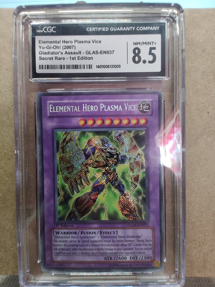 Yu-Gi-Oh Official Game Card CGC 8.5 NM-MINT+ GLAS-EN037 Elemental Hero Plasma Vice (Secret Rare) 1st Edition See Picture. In-Stock, 100% AUTHENTIC. Accept Paypal. Generally, it takes sometime for delivery to outside US, depends on the custom clearance. some countries may take longer time. We don't ship to APO/FPO, Africa and some other countries. Please contact us for enquiry of countries excluded. Public holidays and Sunday are not included in the expected delivery date.