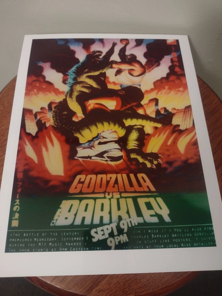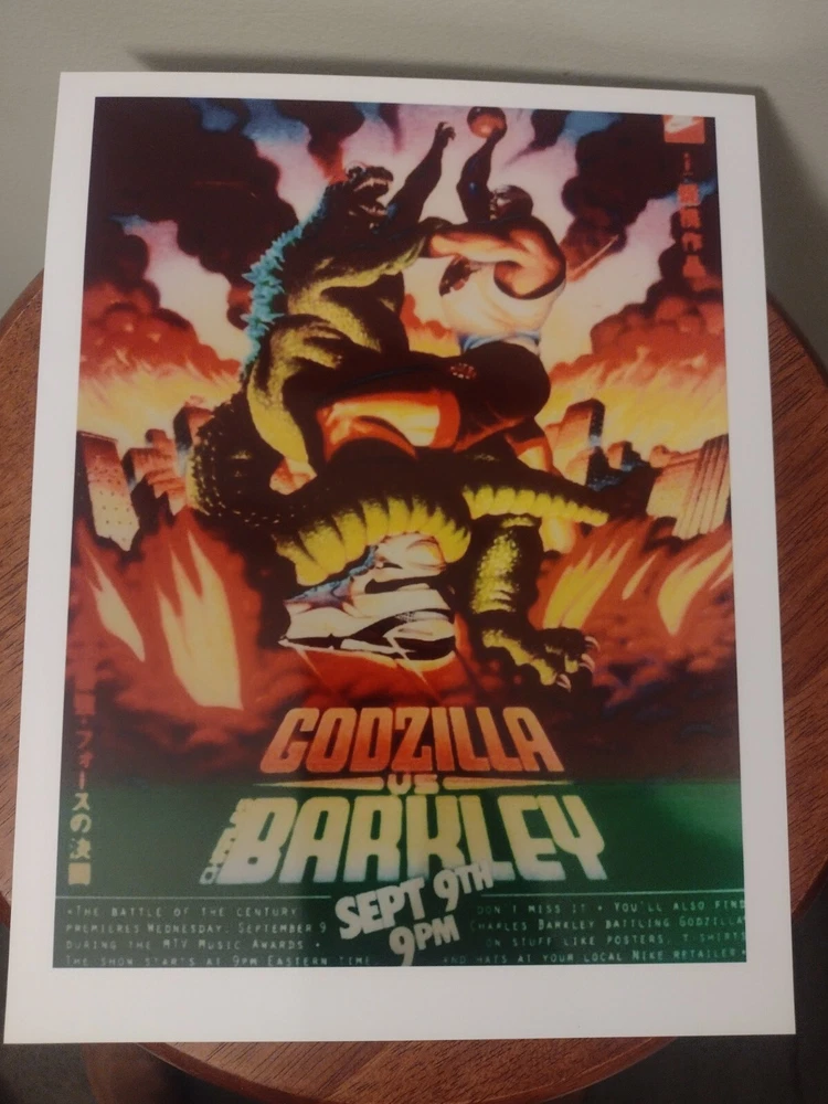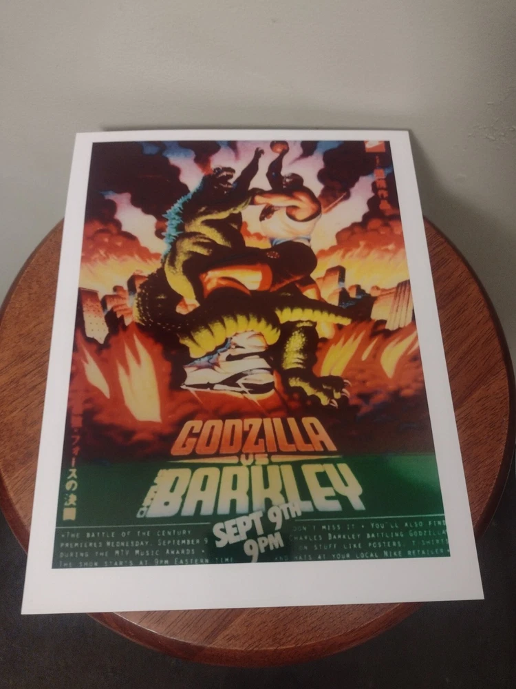 This 8.5x11 ultra premium glossy poster features the legendary basketball player Charles Barkley facing off against the iconic monster Godzilla in a Basketball shoe commercial from the 90's. The poster is a reproduction and is in mint condition, perfect for any vintage sports memorabilia collection. The poster showcases the event/tournament "SIR CHARLES BARKLEY VS GODZILLA IN THE 1992 BASKETBALL SHOE COMMERCIAL" and is a unique addition to any fan's collection. The item is made in the United States. Get your hands on this today! BRAND NEW!šÆ CHARLES BARKLEYš„VS GODZILLAš„8.5x11 COLOR ART ULTRA PREMIUM GLOSSY REPRINT WALL/LOCKER (1992) BASKETBALL SHOE COMMERCIAL POSTER!𤩠*THE GREEN MONSTER VERSION! CONDITION: BRAND NEW!šÆ ERA: 90's VINTAGE STYLE: COLOR ART MATERIAL: ULTRA PREMIUM GLOSSY *REPRINT* *PRINTED FROM OUR POSTER SHOP!š *CHARLES BARKLEY!š„š„š„ *GODZILLA!š„š„š„ *THIS BRAND NEW!šÆ CHARLES BARKLEYš„VS GODZILLAš„8.5x11 COLOR ART ULTRA PREMIUM GLOSSY (1992) BASKETBALL SHOE COMMERCIAL POSTER IS FADE RESISTANT UP TO 70 YEARS!𤯠*SHIPS FREE!š¤ AND VERY FAST!ā”ā”ā”(1-3 DAYS) USPS PRIORITY MAIL WITH TRACKING NUMBER.š *GET IT! WHILE IT STILL LAST!š¤«