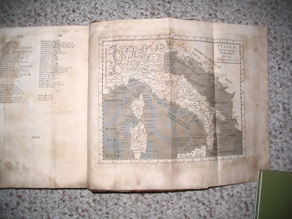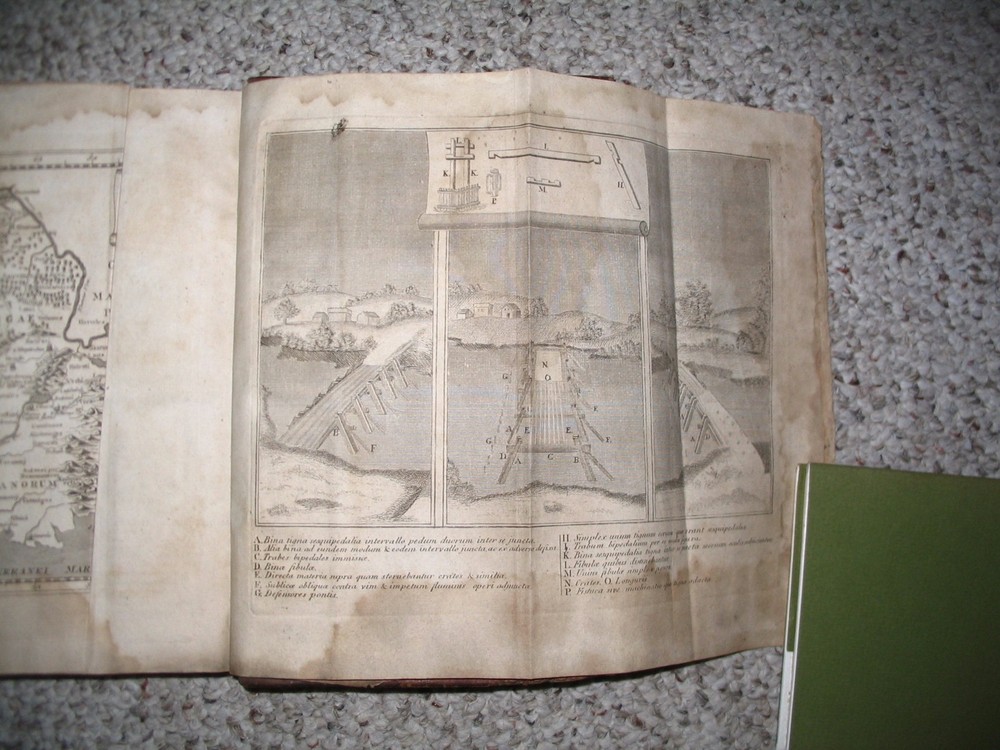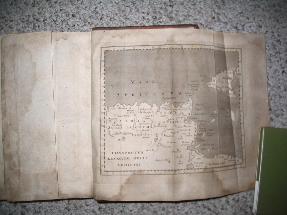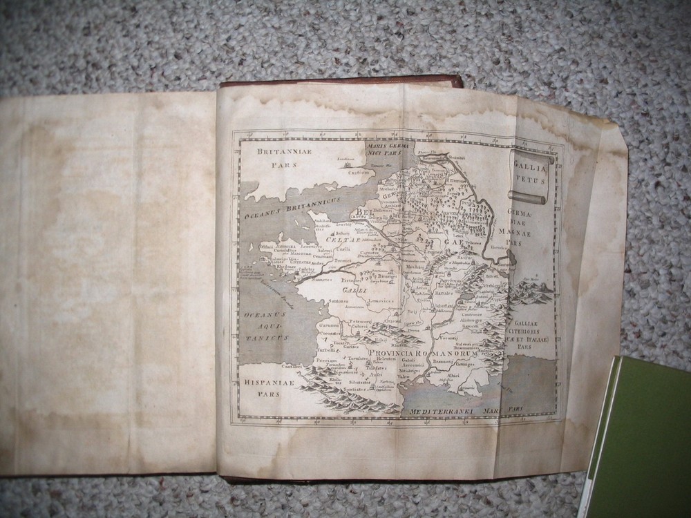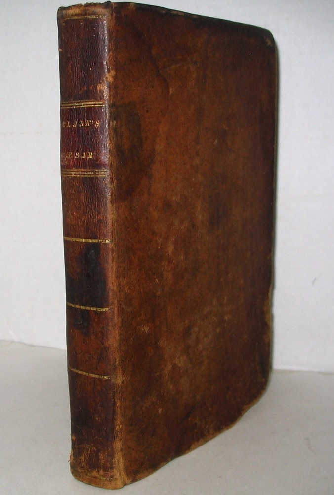 C. Julii Caesaris , Que Extant , Interpretatione et notis . Illustravit Johannes Godvinus , Professaro Regius in USUM Delphini . The notes and interpretations translated and improved , by Thomas Clark . Published in Philadelphia , 1813 . First US edition . Full leather with lots of wear . Foxing/stains throughout the book . 4 engravings : 3 maps and 1 plan for bridge .