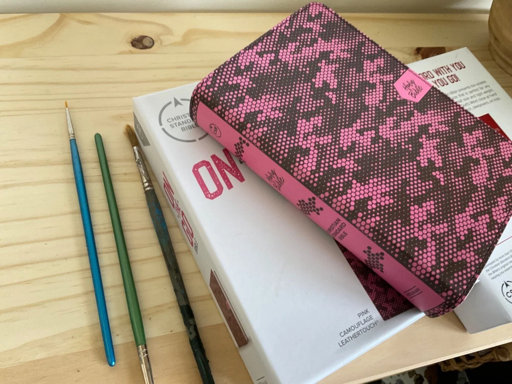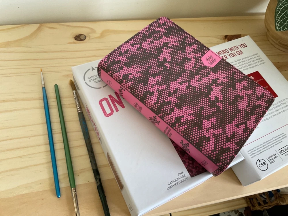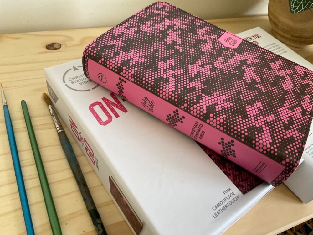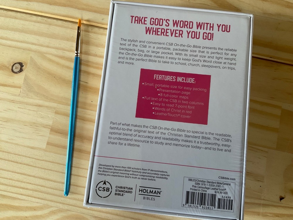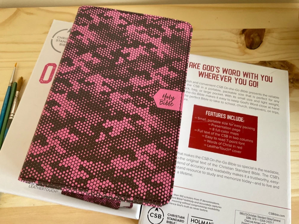 CSB Compact On the Go Bible Complete Text of The Christian Standard Bible - 2018 Red Letter Text & Color Maps Pink Camouflage Leather-Touch Cover Dimensions - 6.75 x 4.50 x 1.25" Brand New in Box - (photos of the cover and inside the Bible are from one previously opened, you will receive one sealed in original box) Holman Publishing Double Column Ribbon Marker - Pink Need a portable and stylish Bible that fits in your purse or bag? The CSB On-the-Go Bible is exactly what you're looking for! It presents the reliable text of the CSB in a portable, packable size that is perfect for any backpack, bag, or large pocket. With its small size and light weight, the On-the-Go Bible makes it easy to keep God's Word close at hand and is the perfect Bible for kids or teens to take to school, church, sleepovers, on trips, and more. Features include: Presentation page 8 full-color maps Full text of the CSB in two-columns Easy to read 7 point font Words of Christ in red Leather-Touch cover every kid or teen is sure to love We ship out with 24 hours of payment from sunny South Carolina