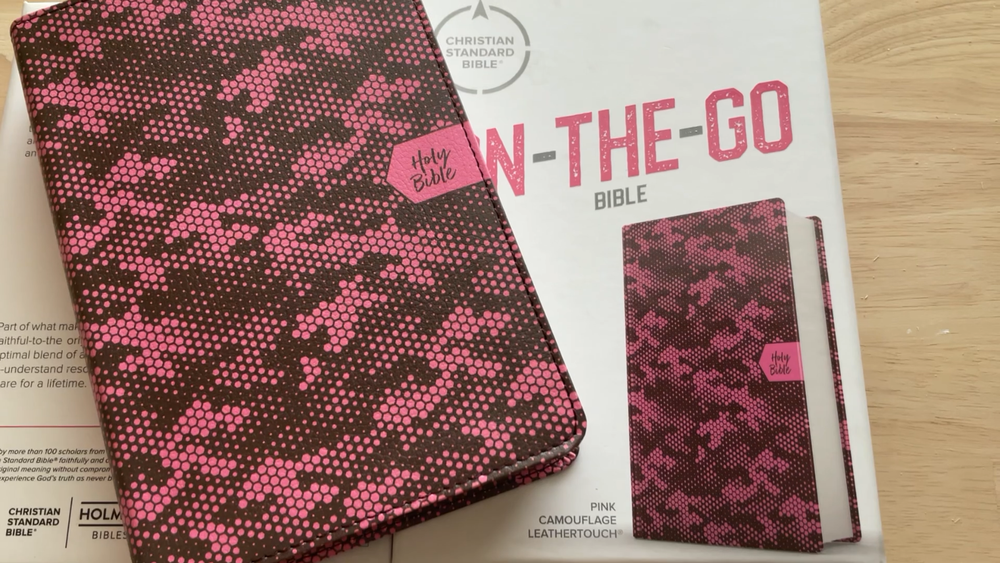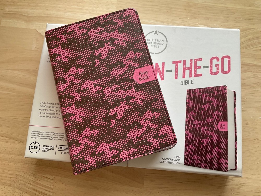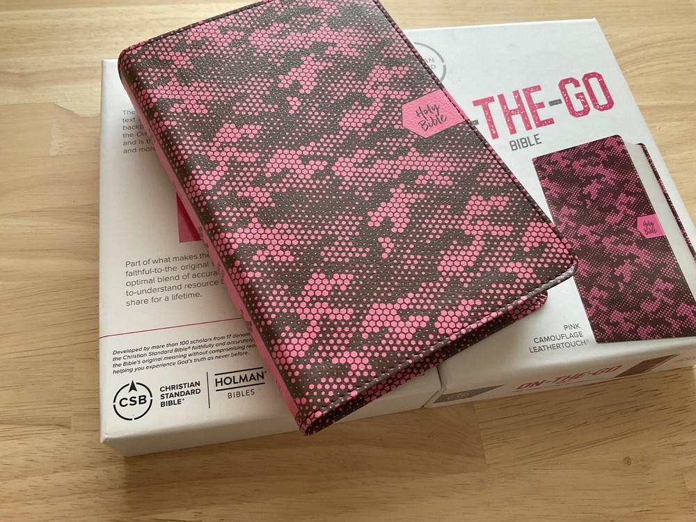 This compact Bible is a perfect travel companion—lightweight yet sturdy with a stylish pink camo cover. The clear CSB translation, red-letter text, and handy ribbon marker make it easy to read and navigate. The size fits perfectly in any bag, and the imitation leather feels great in hand. Love the color maps for quick reference! Ideal for daily devotion or on-the-go reading. Highly recommend!