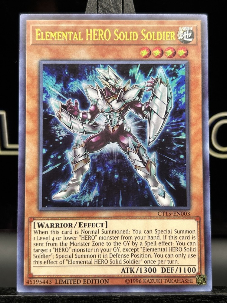 CT15-EN003 Elemental Hero Solid Soldier Ultra Rare 1st Edition NM Yugioh Card Used- Please view pictures. Visit our store for much more