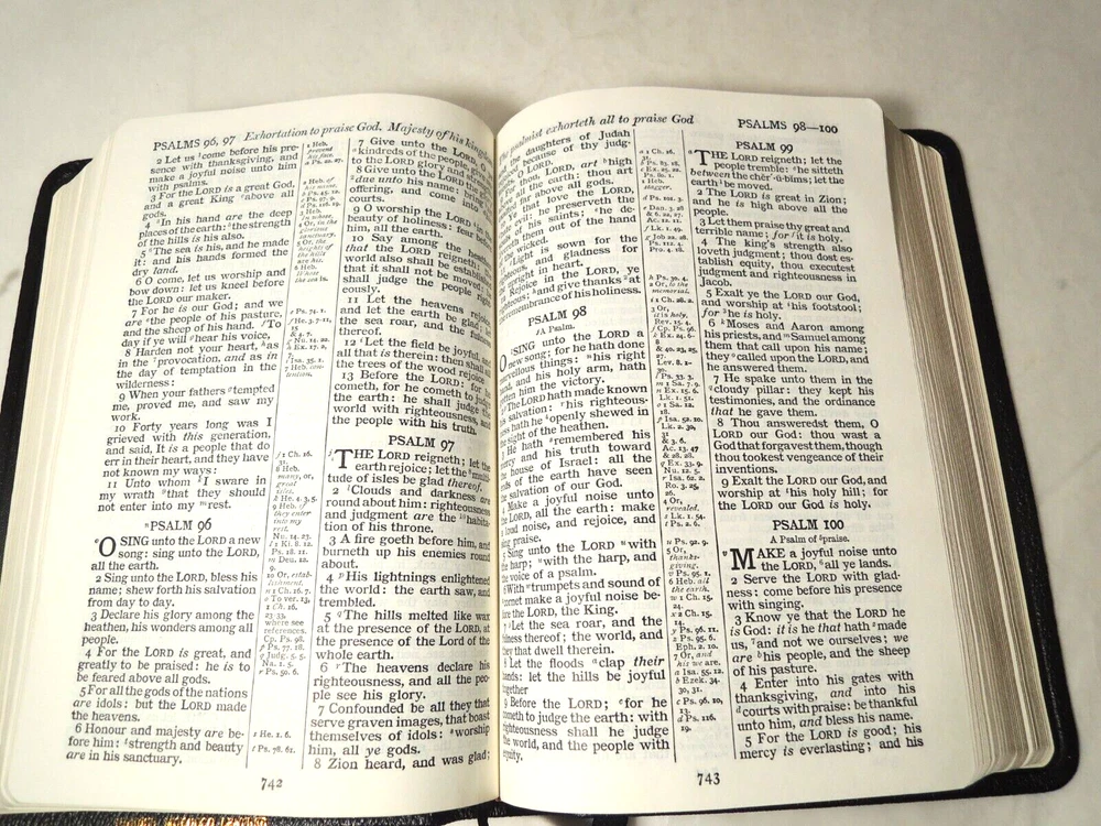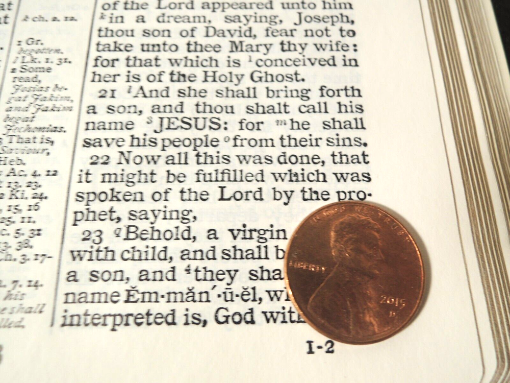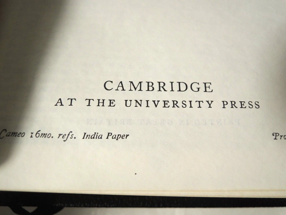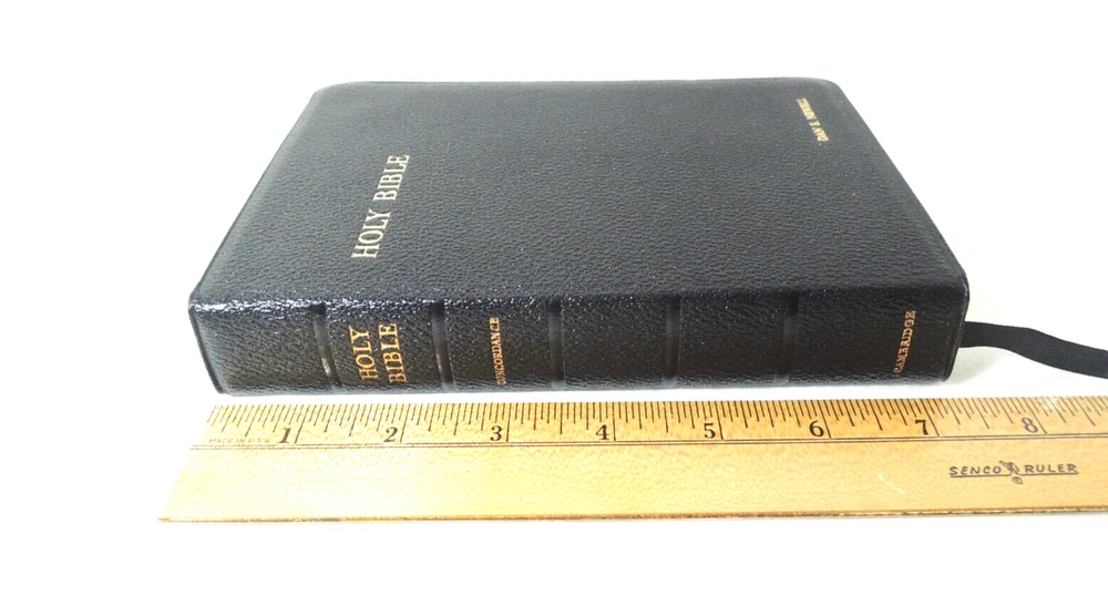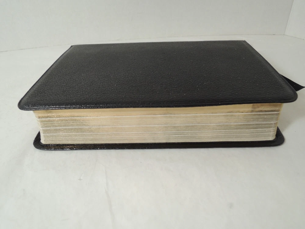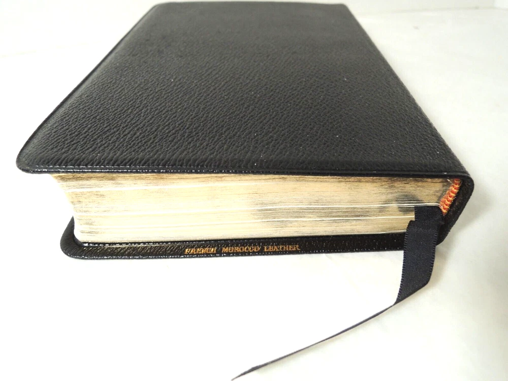 This Cambridge Cameo Bible has French Morocco Leather Style# 75X King James Version Cameo print style Original Box Color Maps Concordance 23 Karat gold page edges Approximate dimensions: 7-1/4 X 5 X 1-1/8 inches [18.4 x 12.7 x 3 cm] Published in U.K.