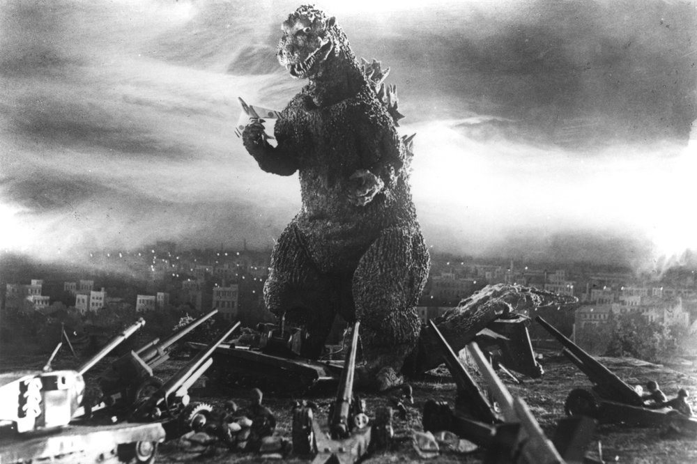 Classic Vintage Japanese Godzilla Army Black and White Poster